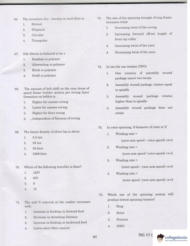 TANCET 2017 Textile Technology Question paper with answer key pdf conducted on March 26, 2017 is available for download. The exam was successfully organized by ANNA University. The question paper comprised a total of 60 questions.