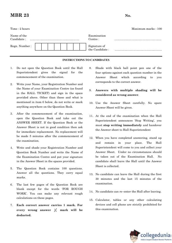 | TANCET 2023 | Question Paper PDF |