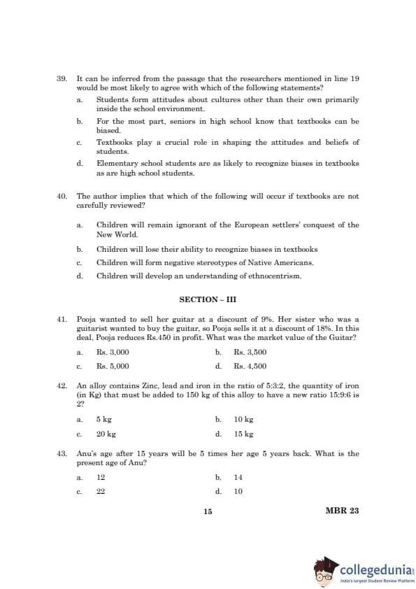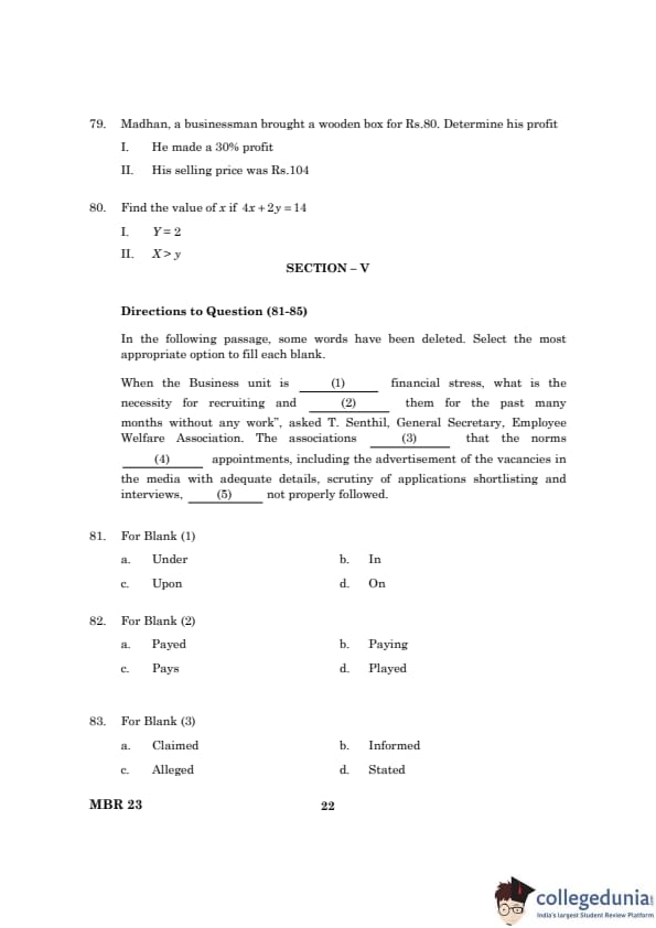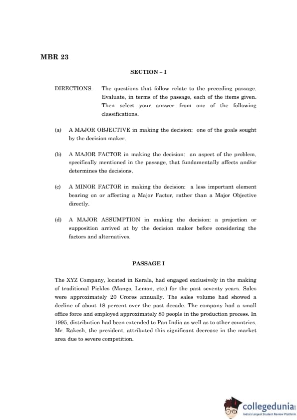 TANCET 2023 MBA Question Paper PDF