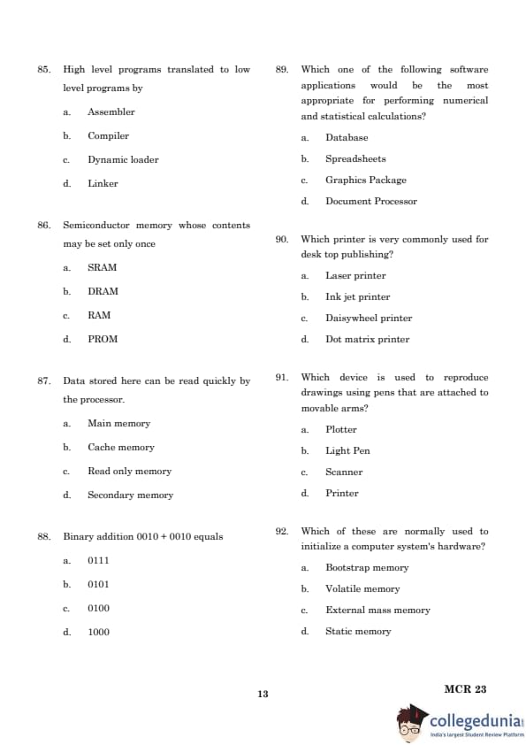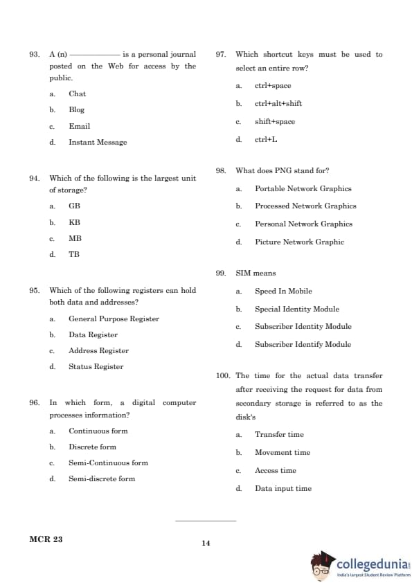 TANCET 2023 MCA Question Paper with Solutions PDF is available for download here. Anna University conducted the exam on March 25, 2023.. TANCET 2023 Question Paper for MCA comprises 100 questions to be attempted in 120 minutes.