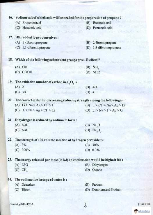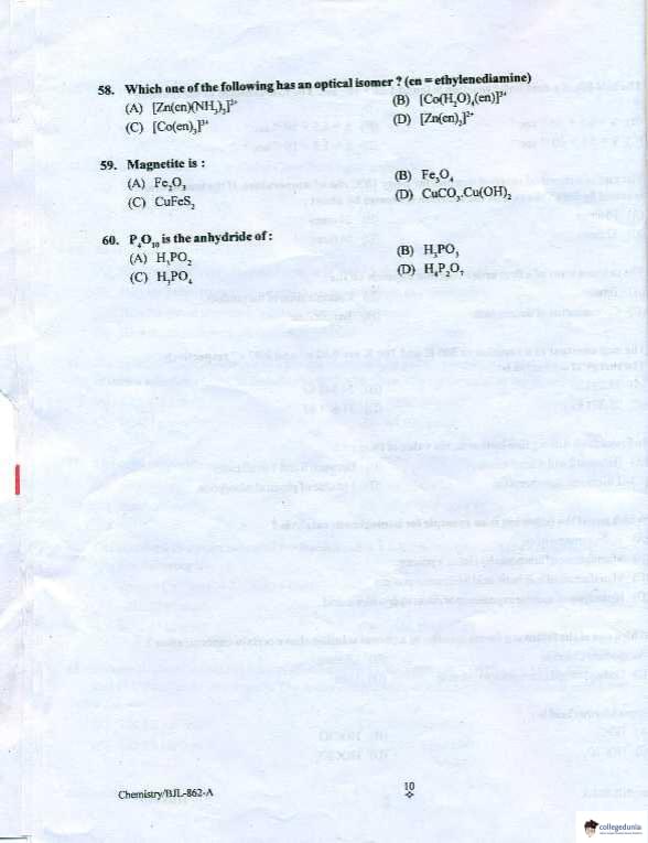 PU CET 2016 Chemistry Question paper with answer key pdf conducted on May 22, 2016 is available for download. The exam was successfully organized by Panjab University, Chandigarh. The question paper comprised a total of 60 questions.