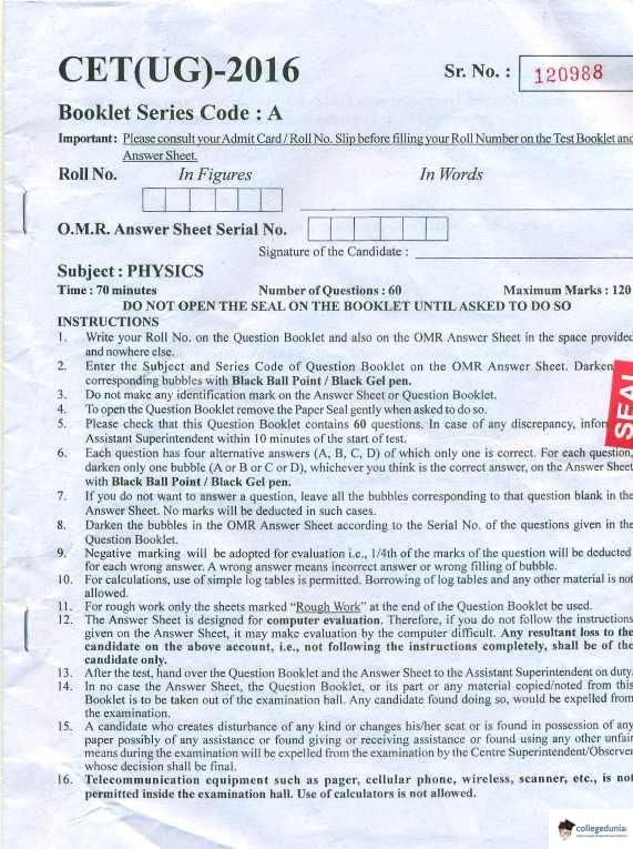 | PU CET 2016 Physics Question Paper PDF | PU CET 2016 Physics Answer Key PDF |