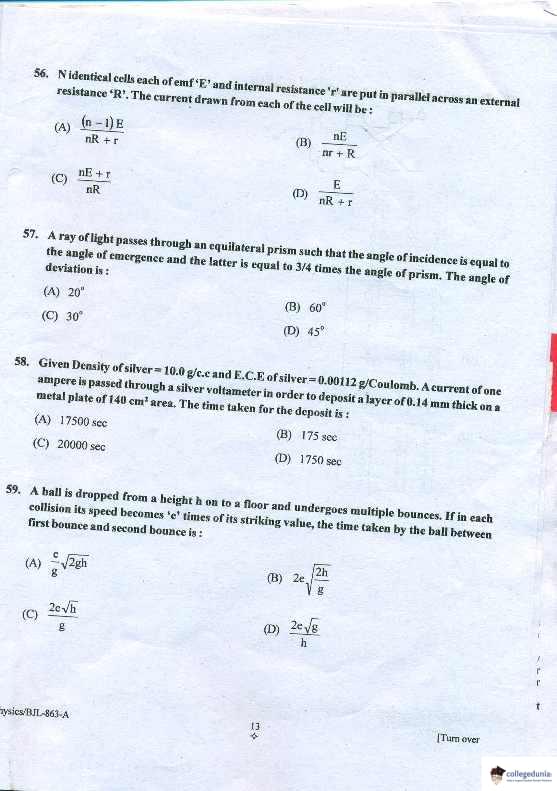 PU CET 2016 Physics Question paper with answer key pdf conducted on May 22, 2016 is available for download. The exam was successfully organized by Panjab University, Chandigarh. The question paper comprised a total of 60 questions.