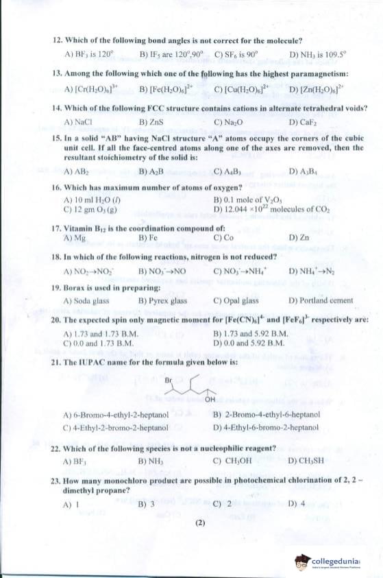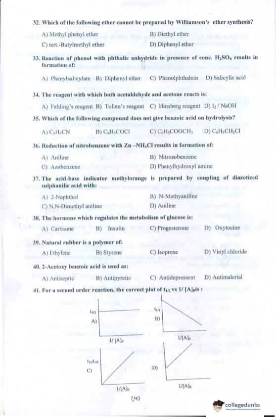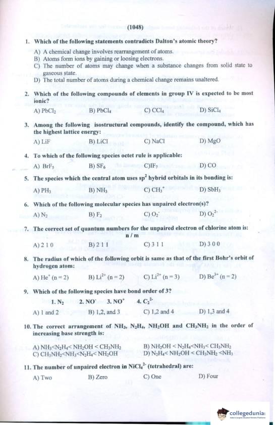 PU CET 2018 Chemistry Question paper with answer key pdf conducted on April 29, 2018 is available for download. The exam was successfully organized by Panjab University, Chandigarh. The question paper comprised a total of 60 questions.