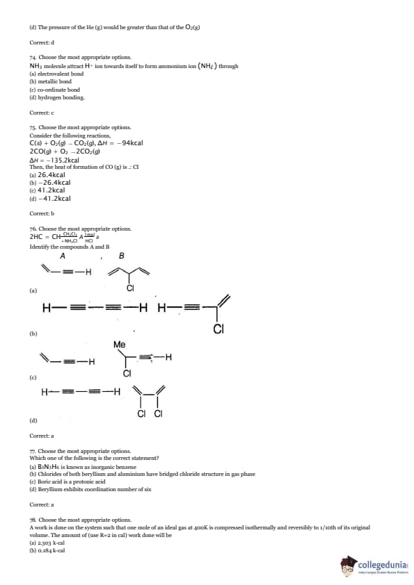 2CO(g) + O2 → 2CO2(g), \Delta H = -135.2\text{ kcalThen, the heat of formation of CO (g) is: