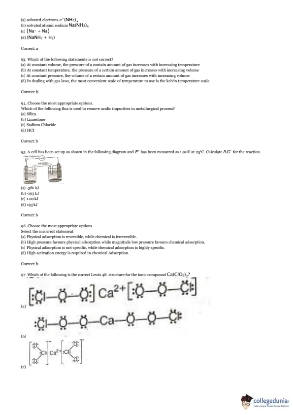 A cell has been set up as shown in the following diagram and E\(^0\) has been measured as 1.00V at 25°C. Calculate \(\Delta\)G\(^0\) for the reaction.