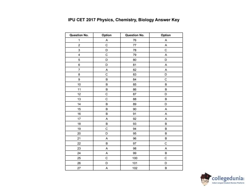| IPU CET 2017 PCB Question Paper with Answer Key | Check Solution |