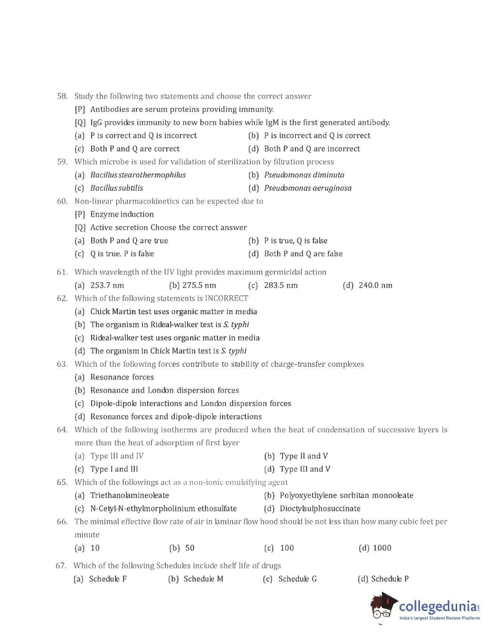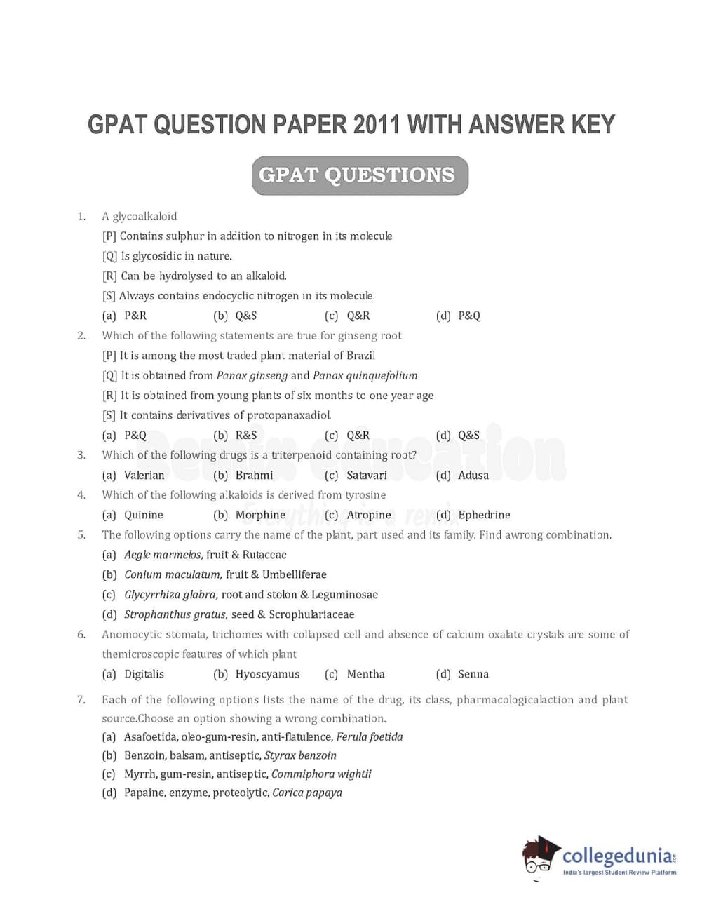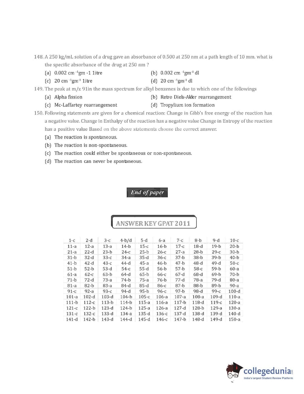 Collegedunia has provided GPAT Previous Year Question paper pdf with answer key in the links given below: