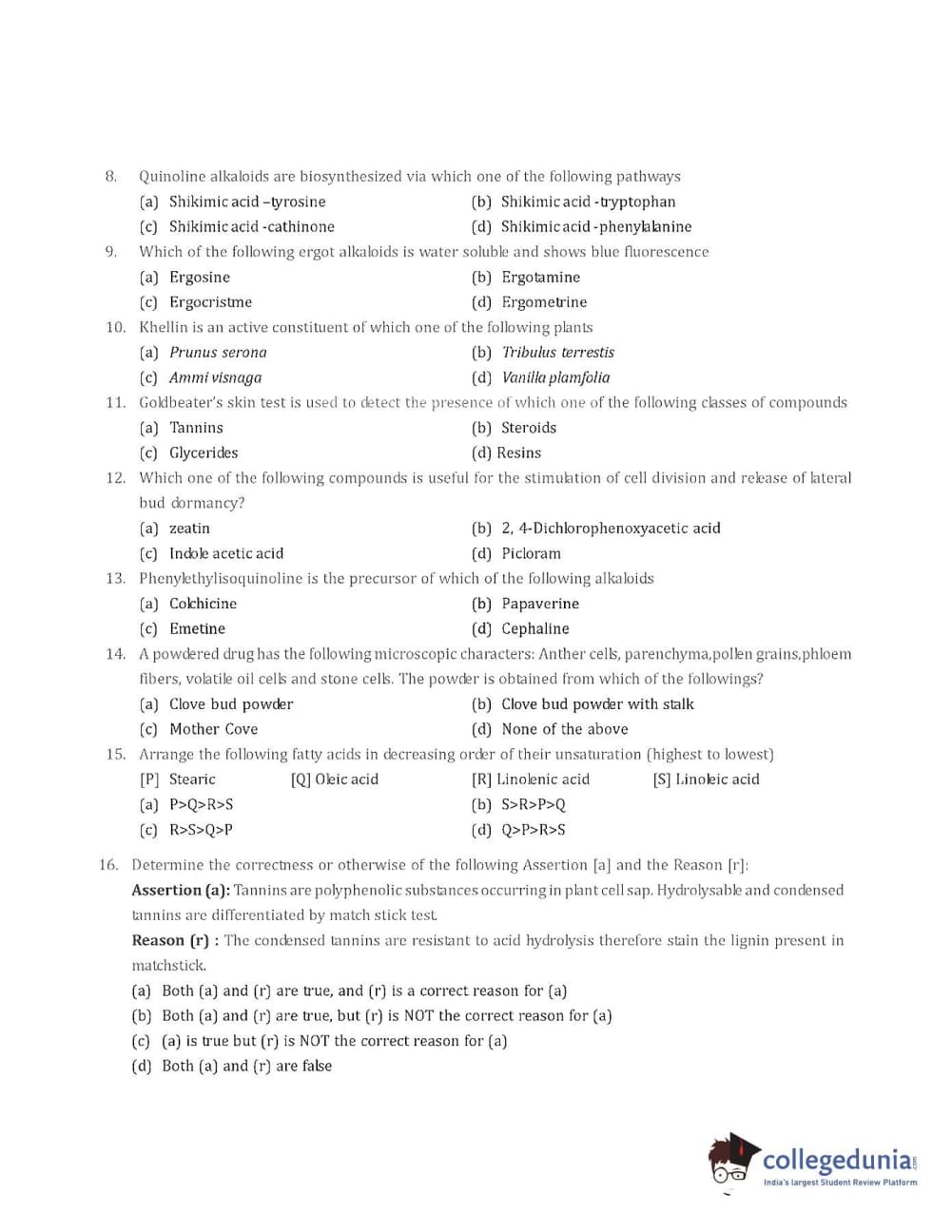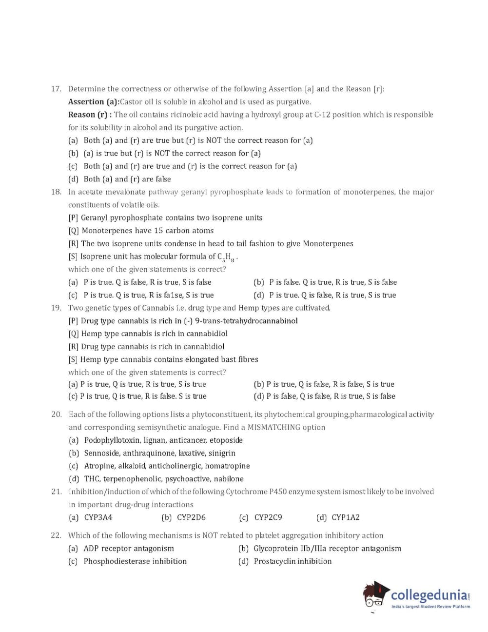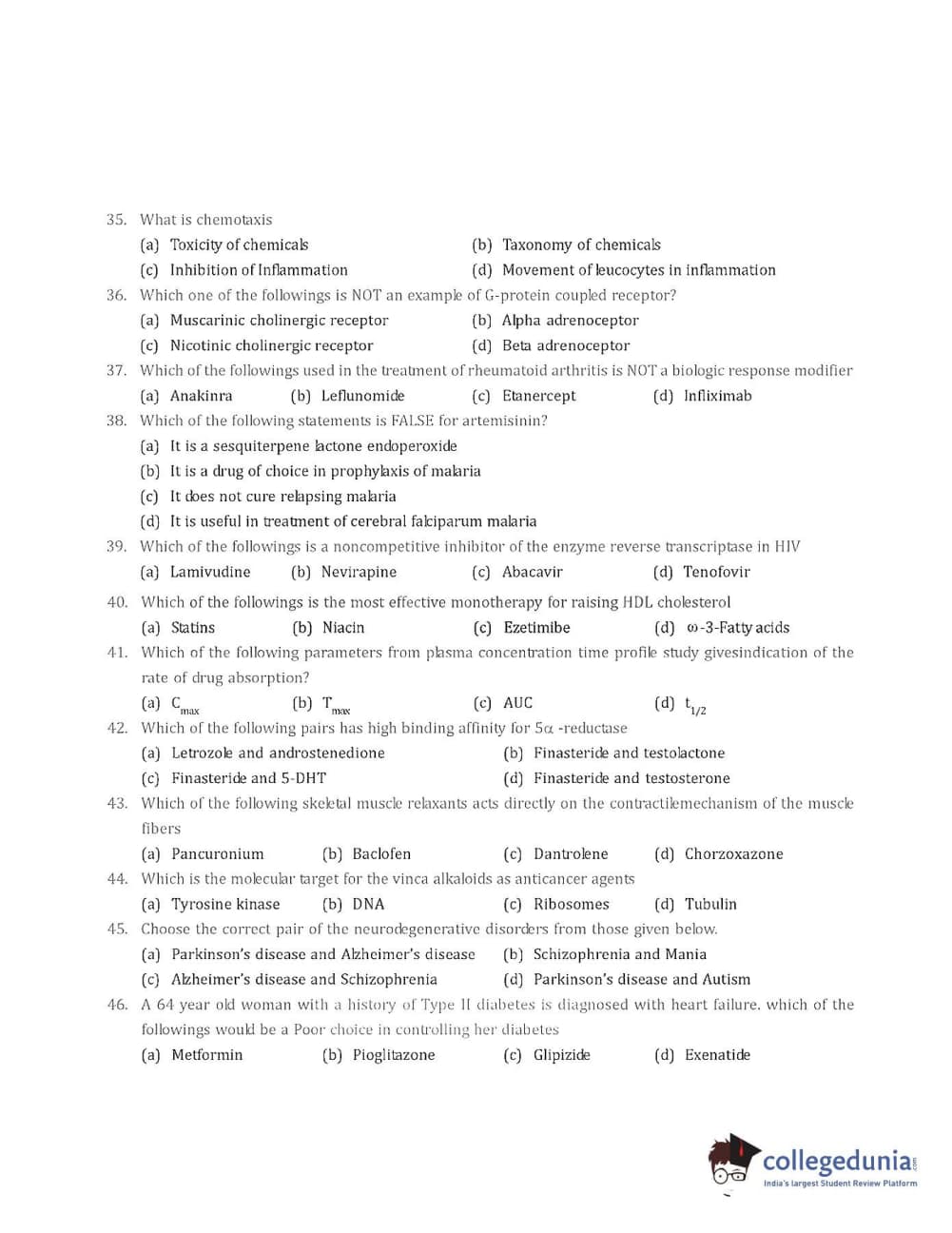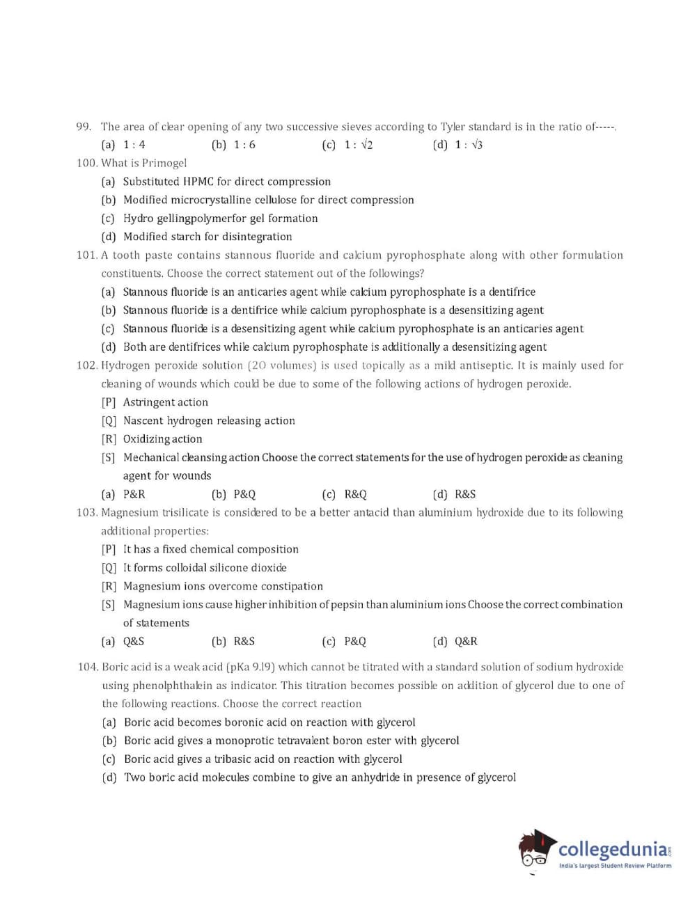 Collegedunia has provided GPAT Previous Year Question paper pdf with answer key in the links given below: