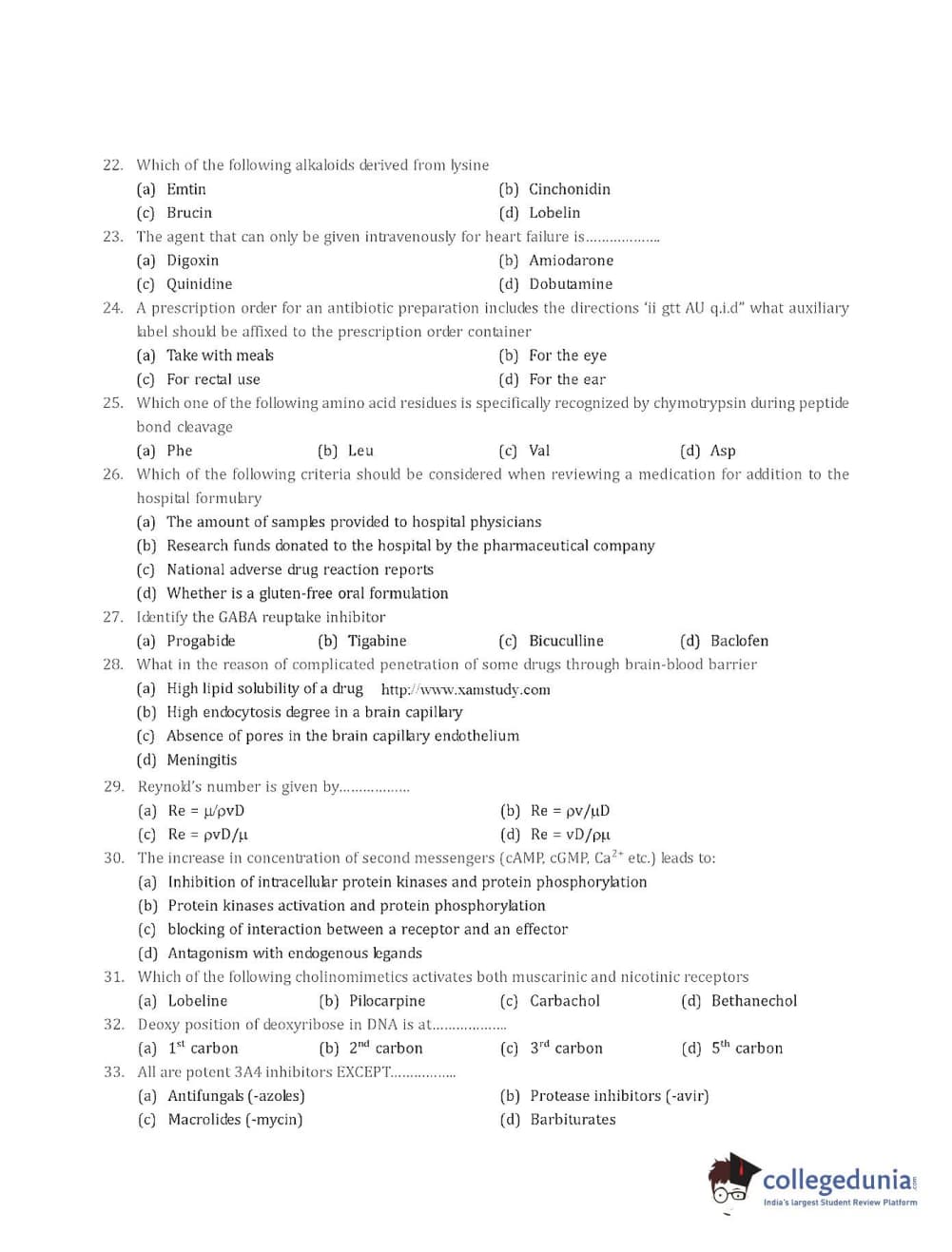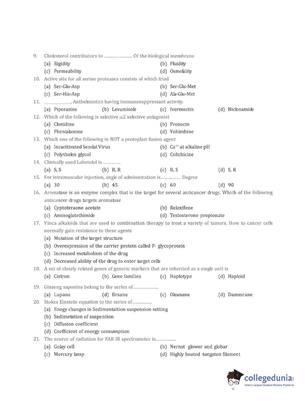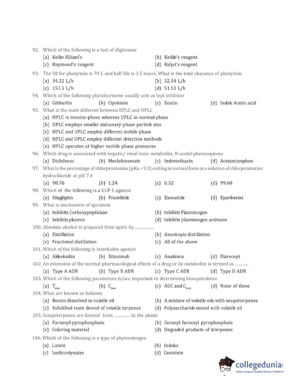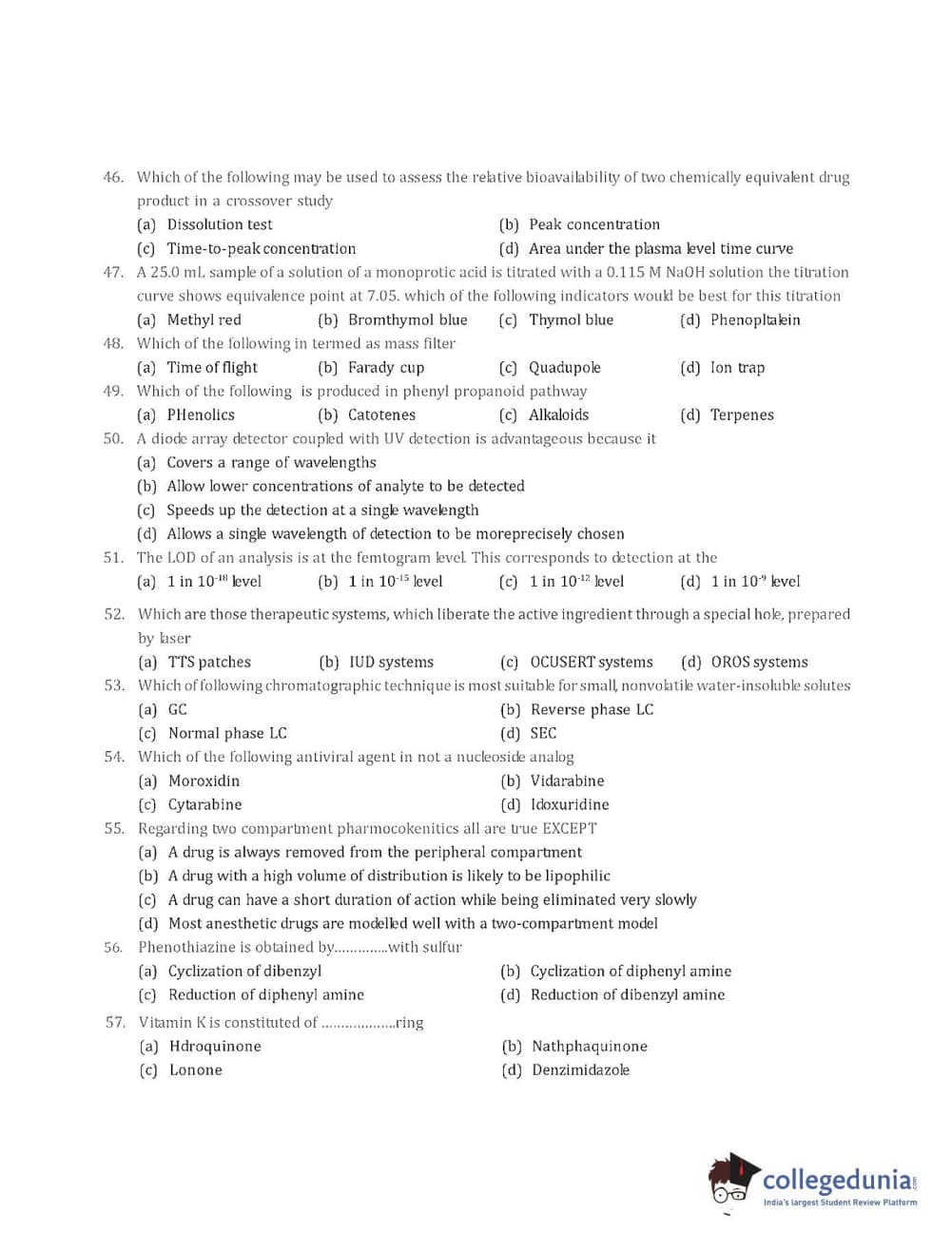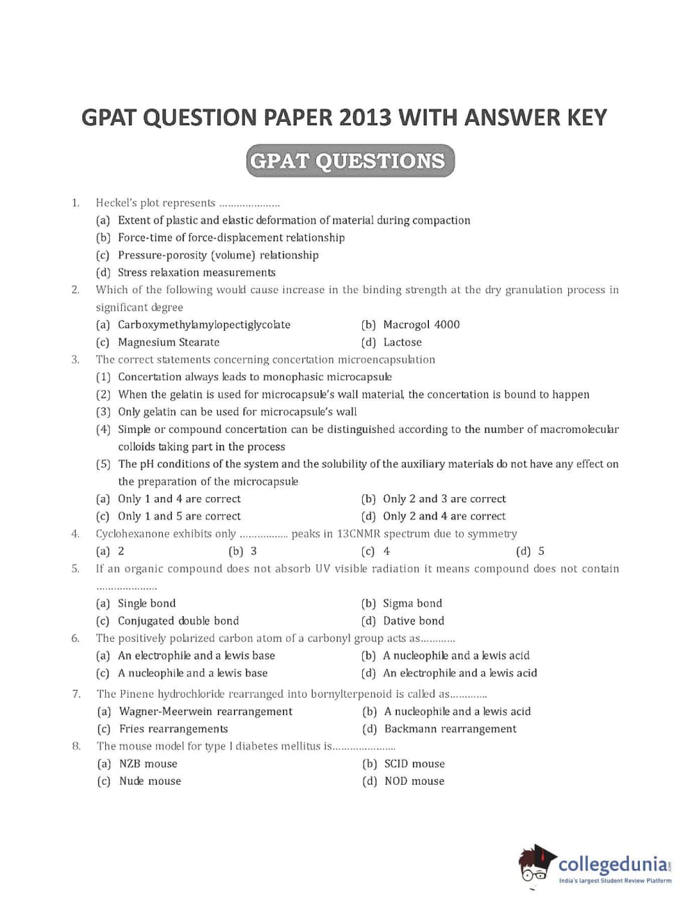Collegedunia has provided GPAT Previous Year Question paper pdf with answer key in the links given below: