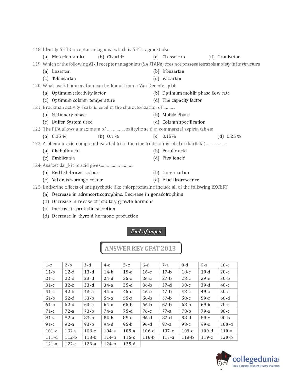 GPAT 2013 Question paper with answer key pdf conducted on May-16 is available for download. The exam was successfully organized by All India Council for Technical Education (AICTE). The question paper comprised a total of 125 questions.