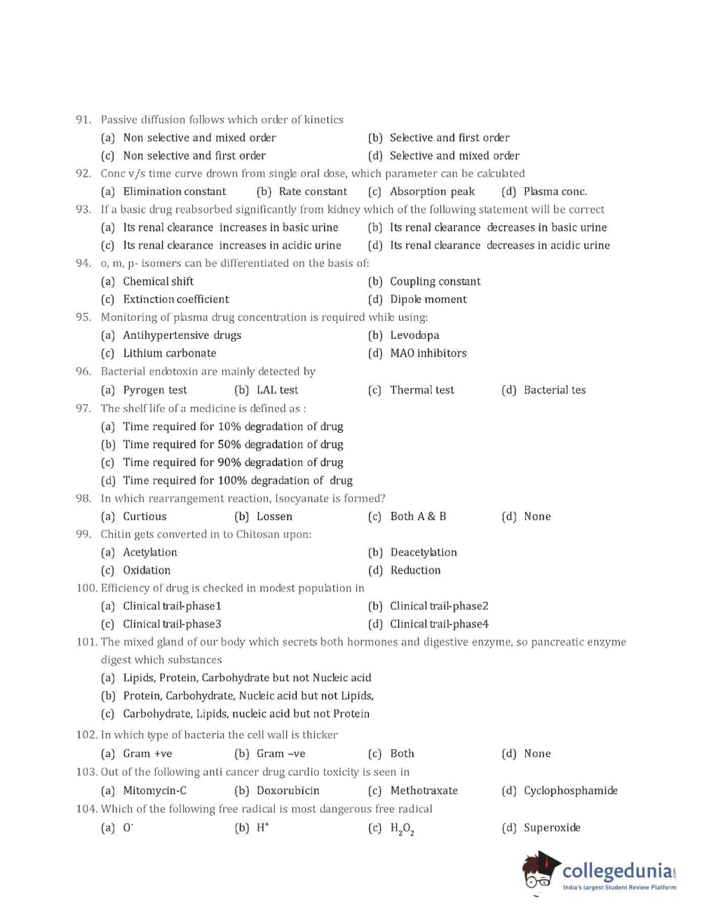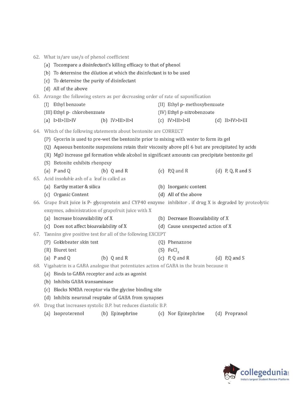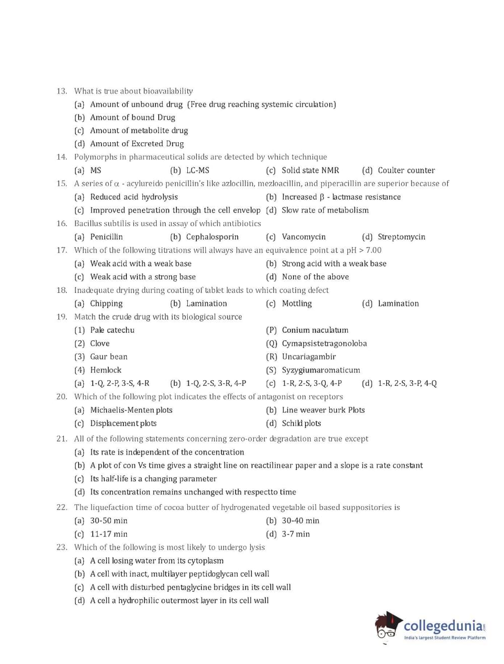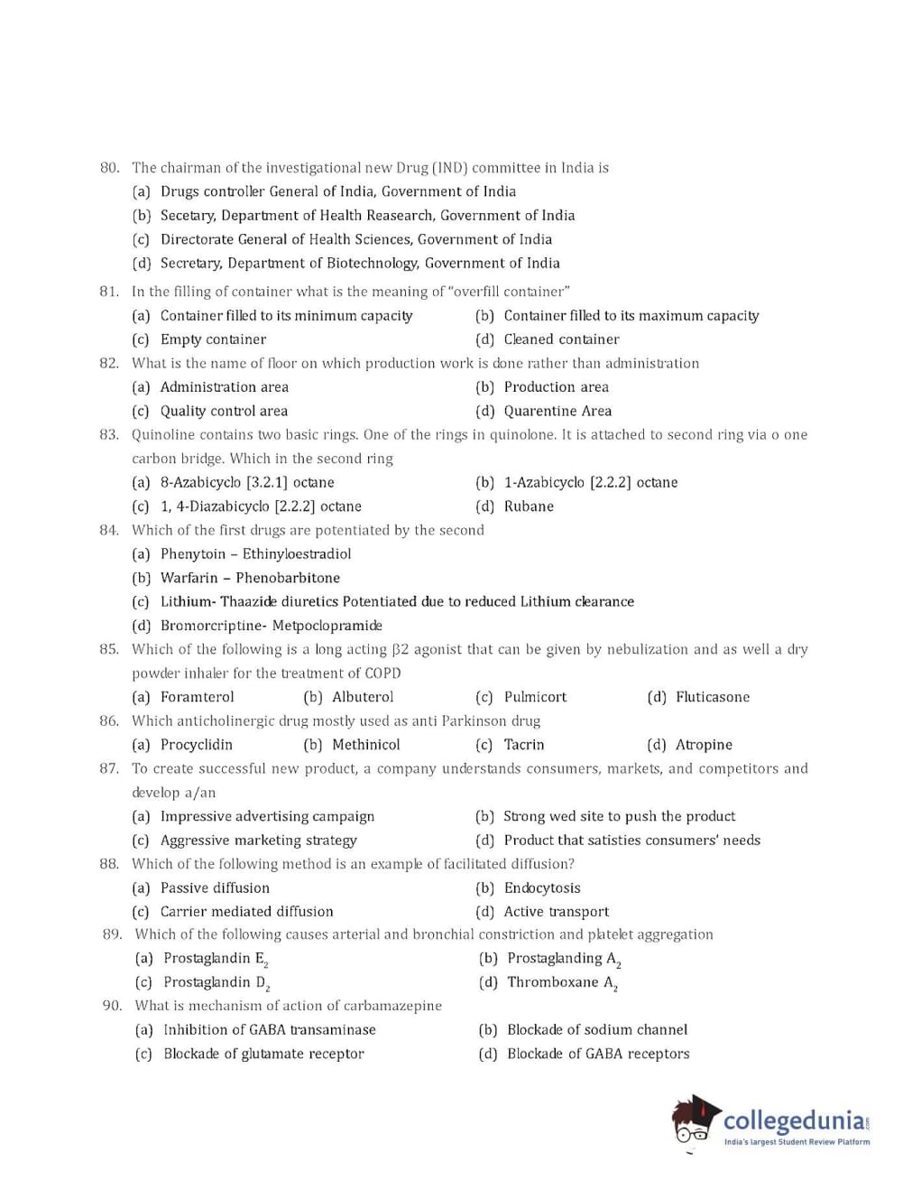Collegedunia has provided GPAT Previous Year Question paper pdf with answer key in the links given below: