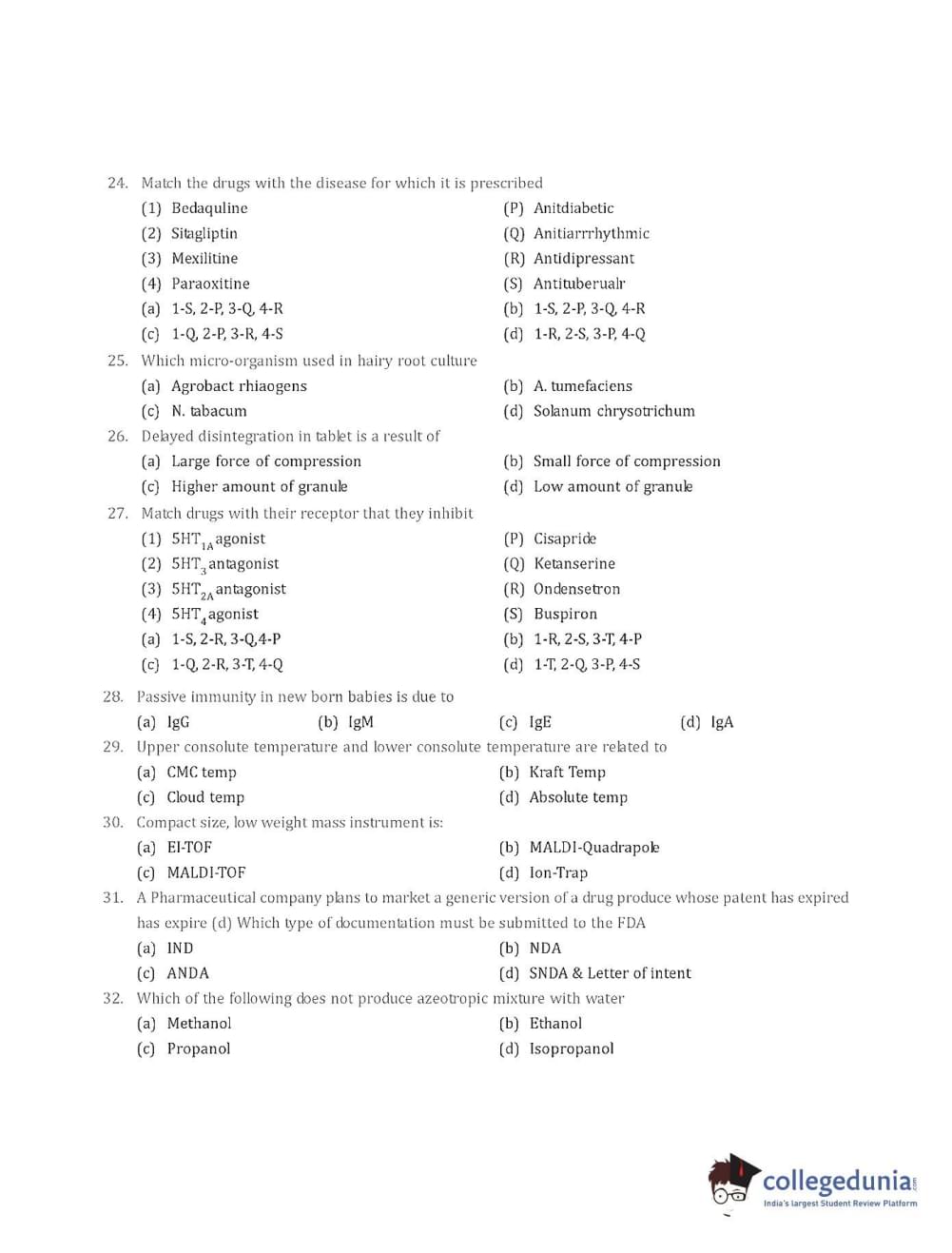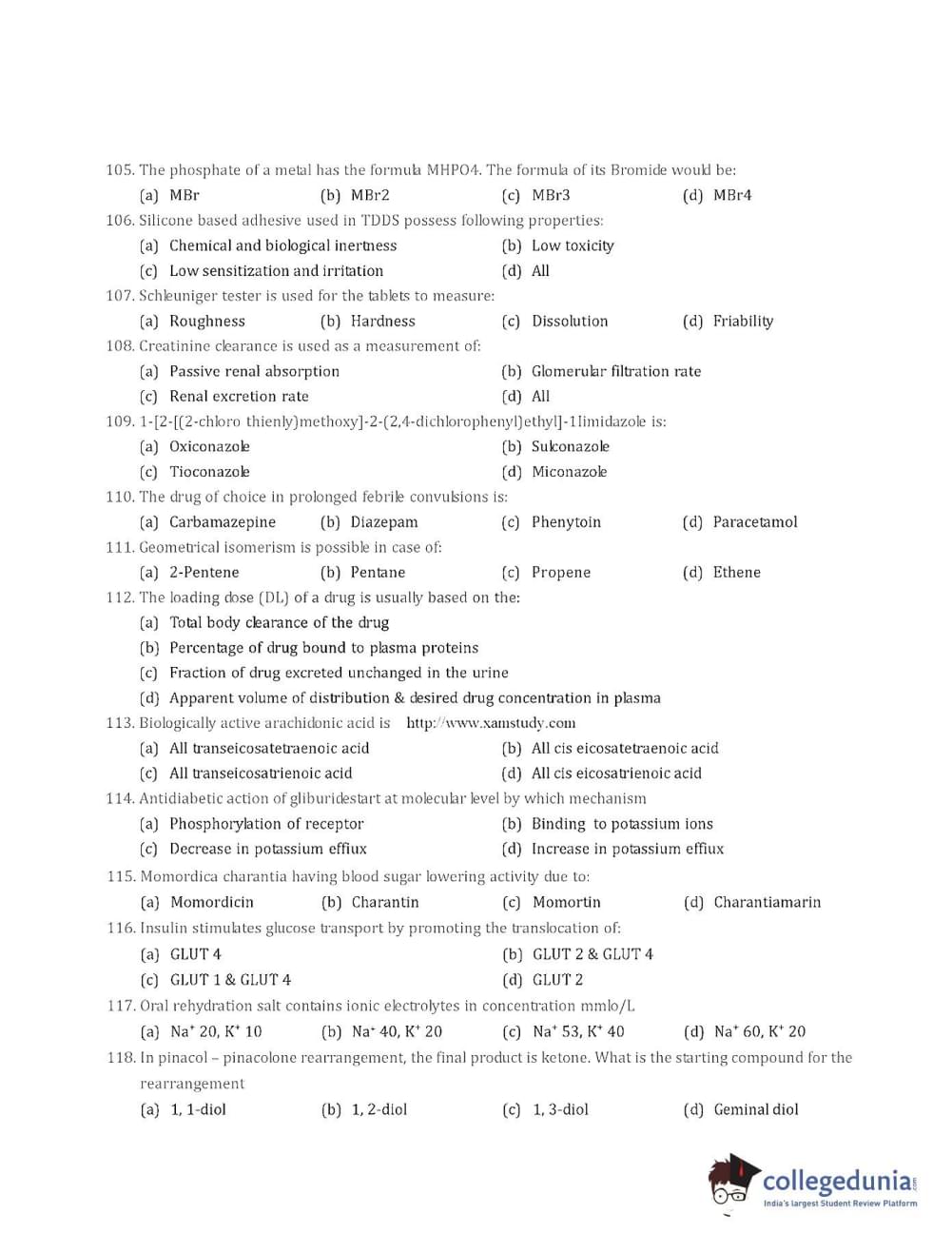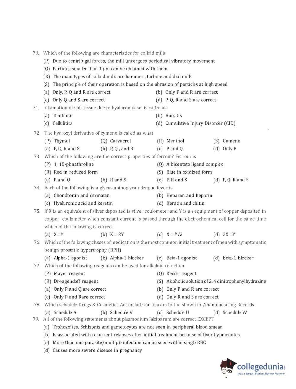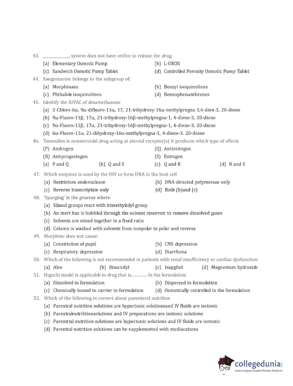 Collegedunia has provided GPAT Previous Year Question paper pdf with answer key in the links given below: