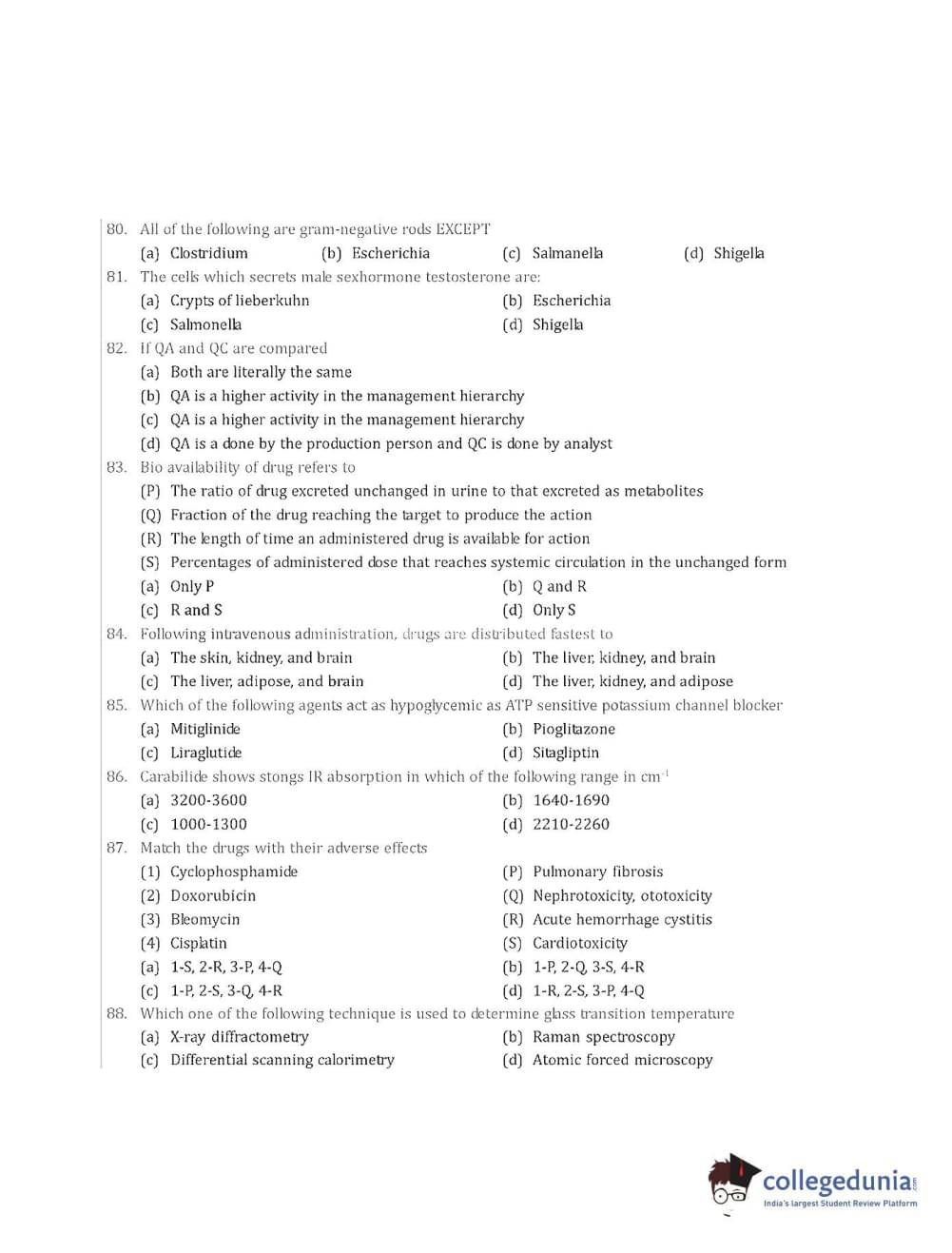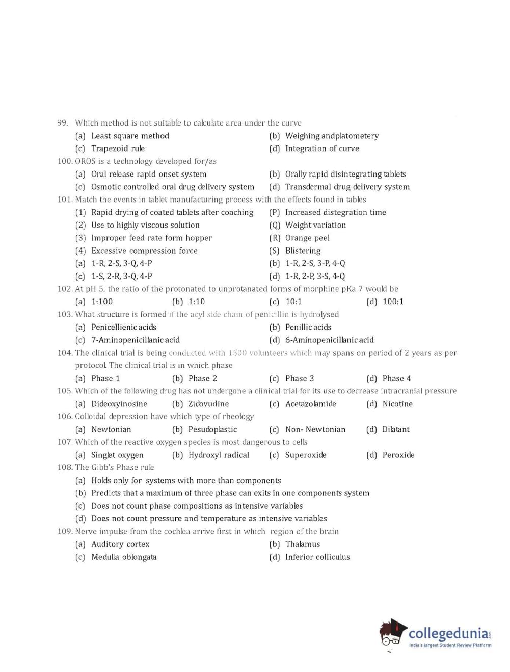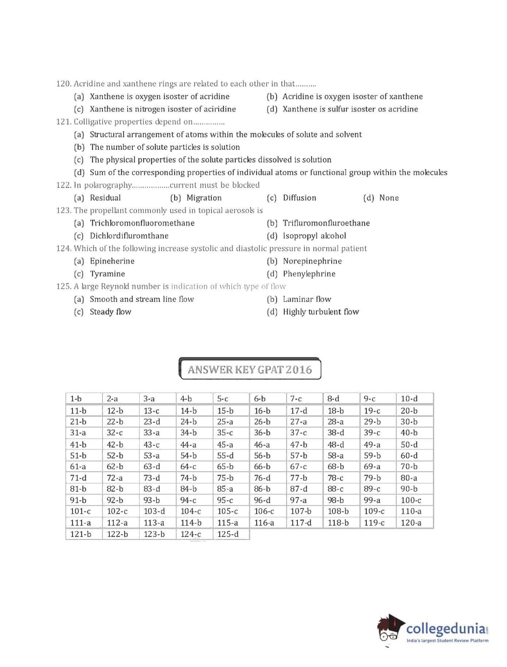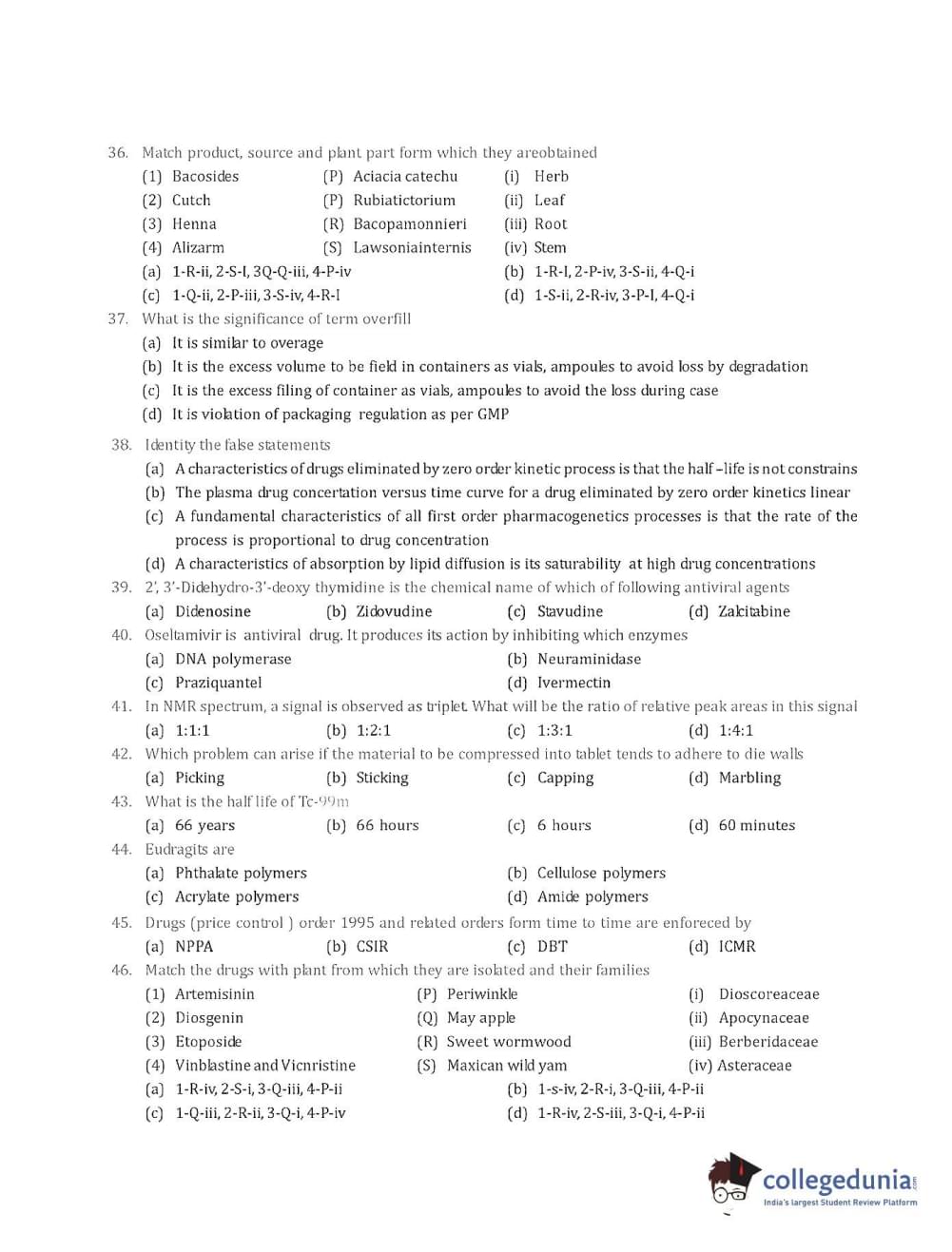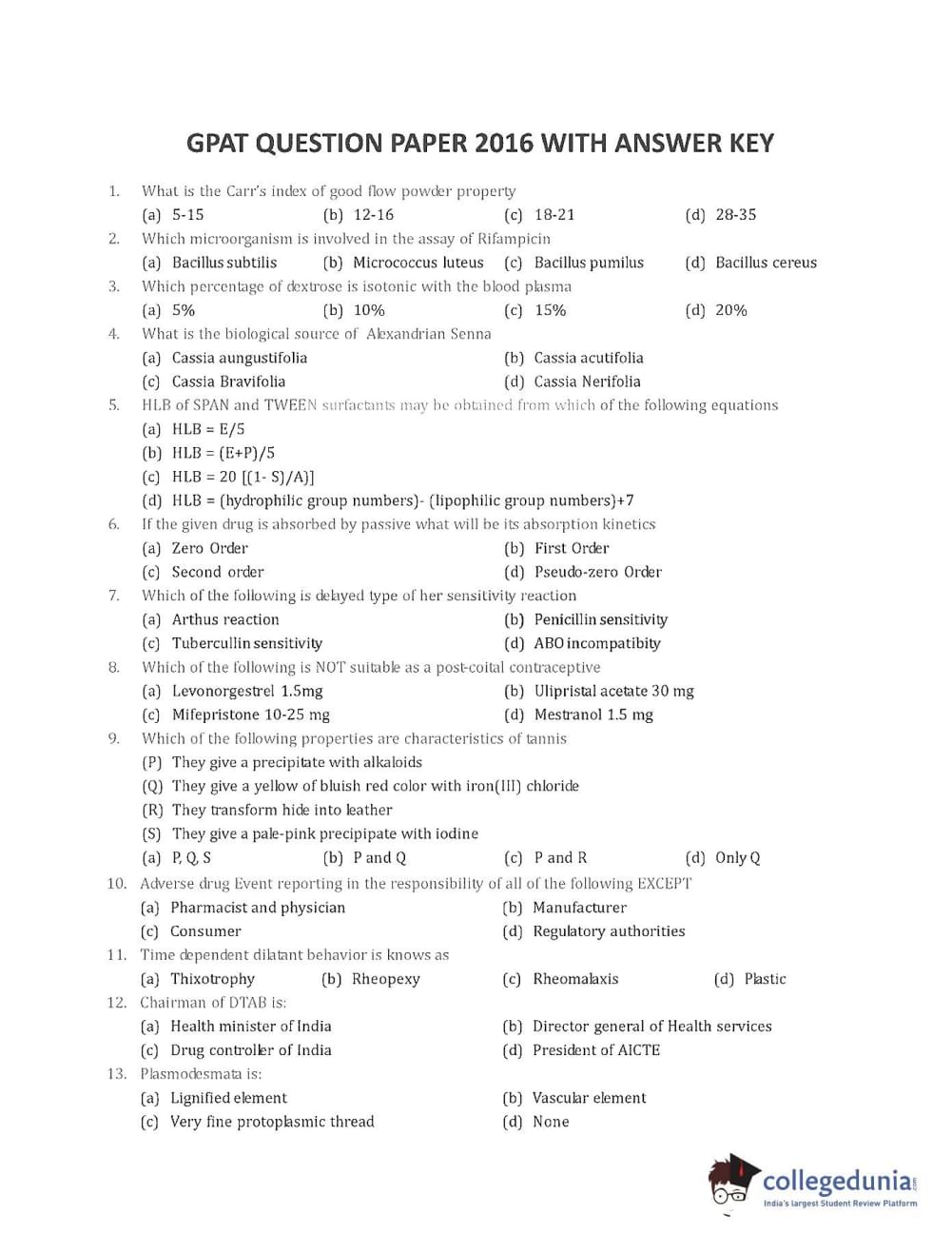 Collegedunia has provided GPAT Previous Year Question paper pdf with answer key in the links given below: