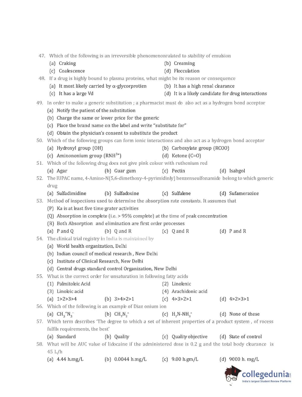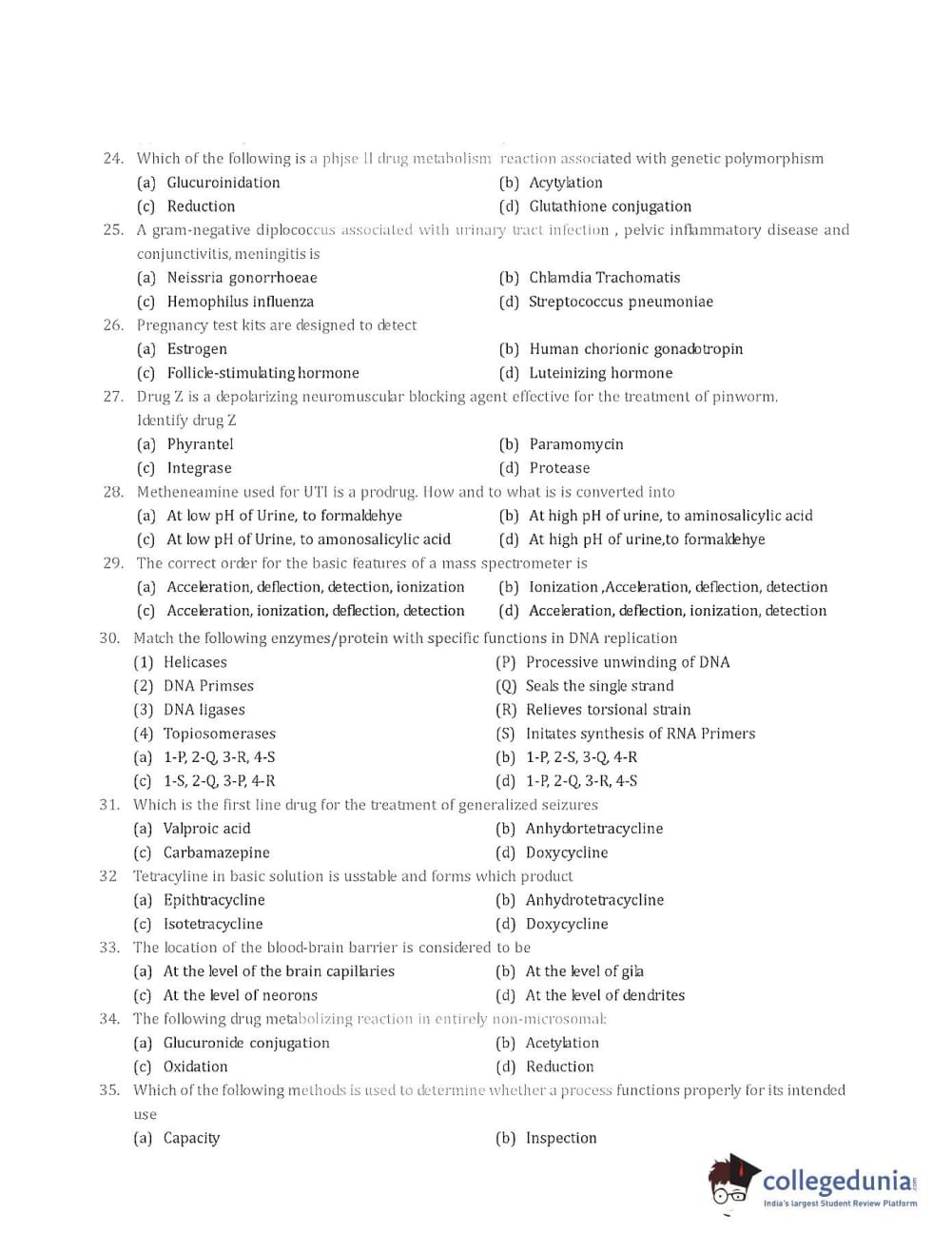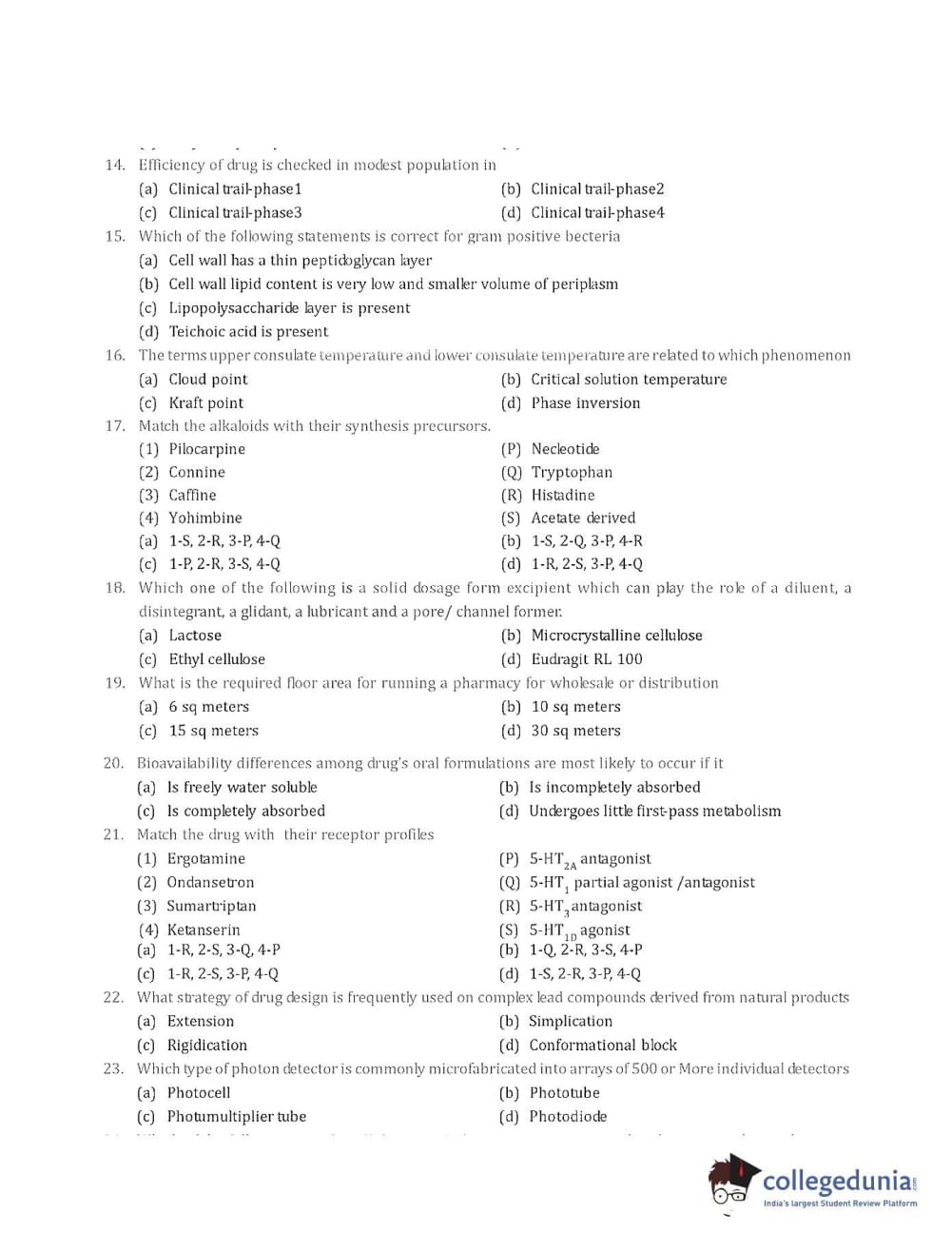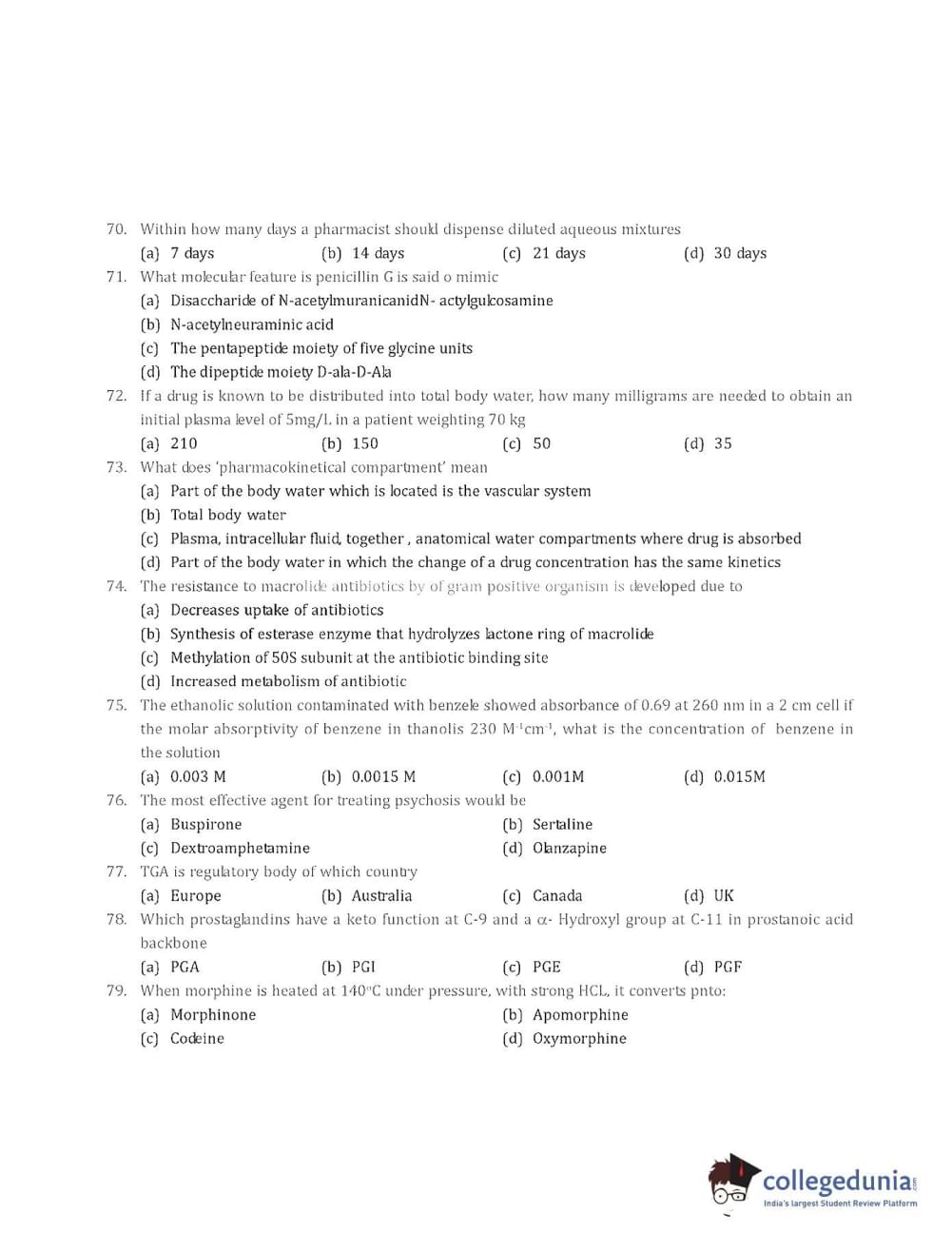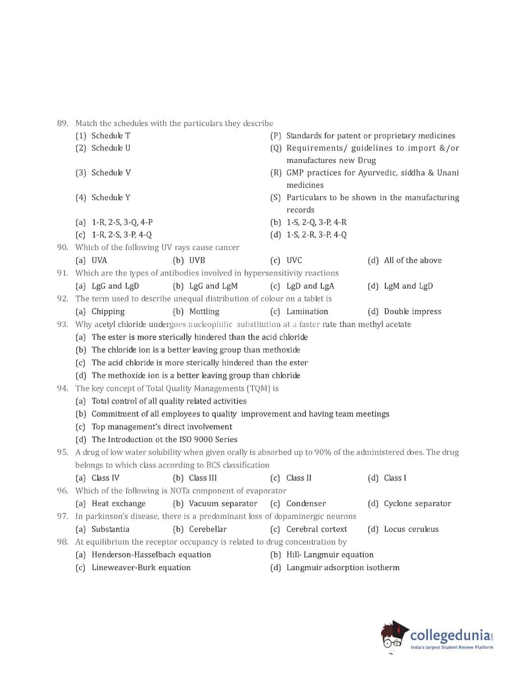 Collegedunia has provided GPAT Previous Year Question paper pdf with answer key in the links given below:
