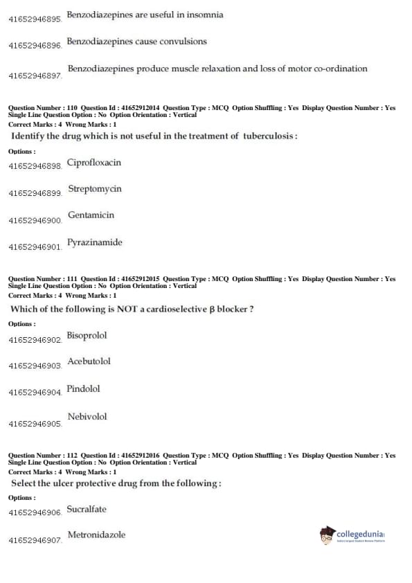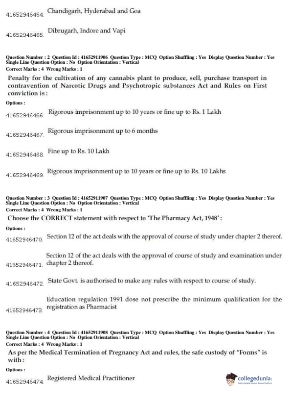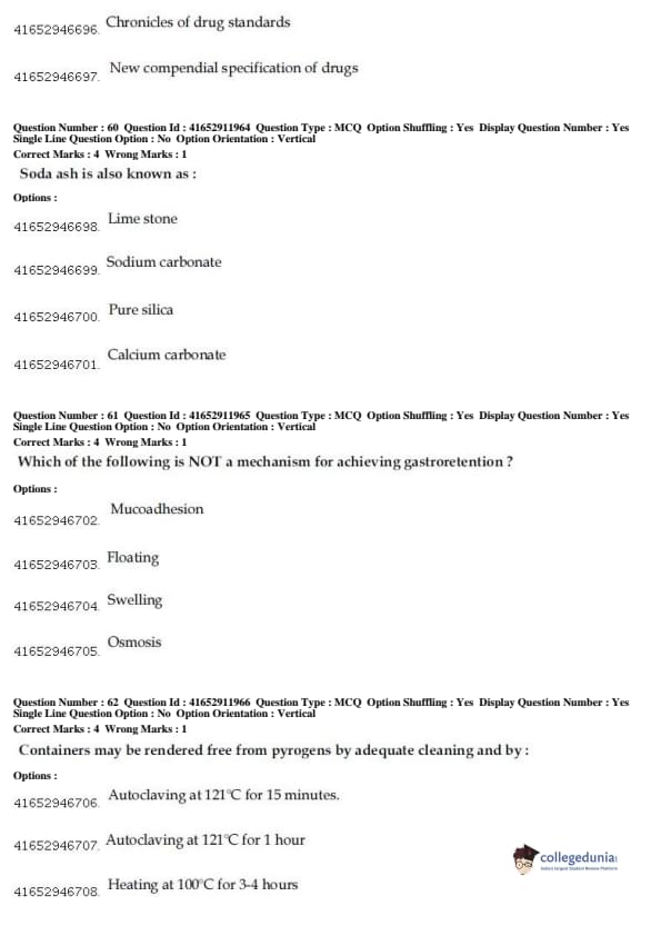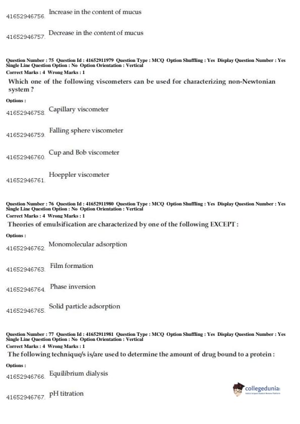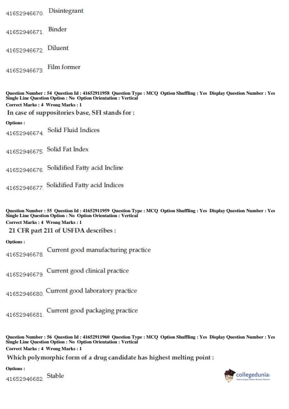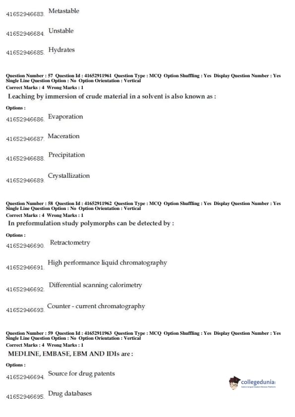 Collegedunia has provided GPAT Previous Year Question paper pdf with answer key in the links given below: