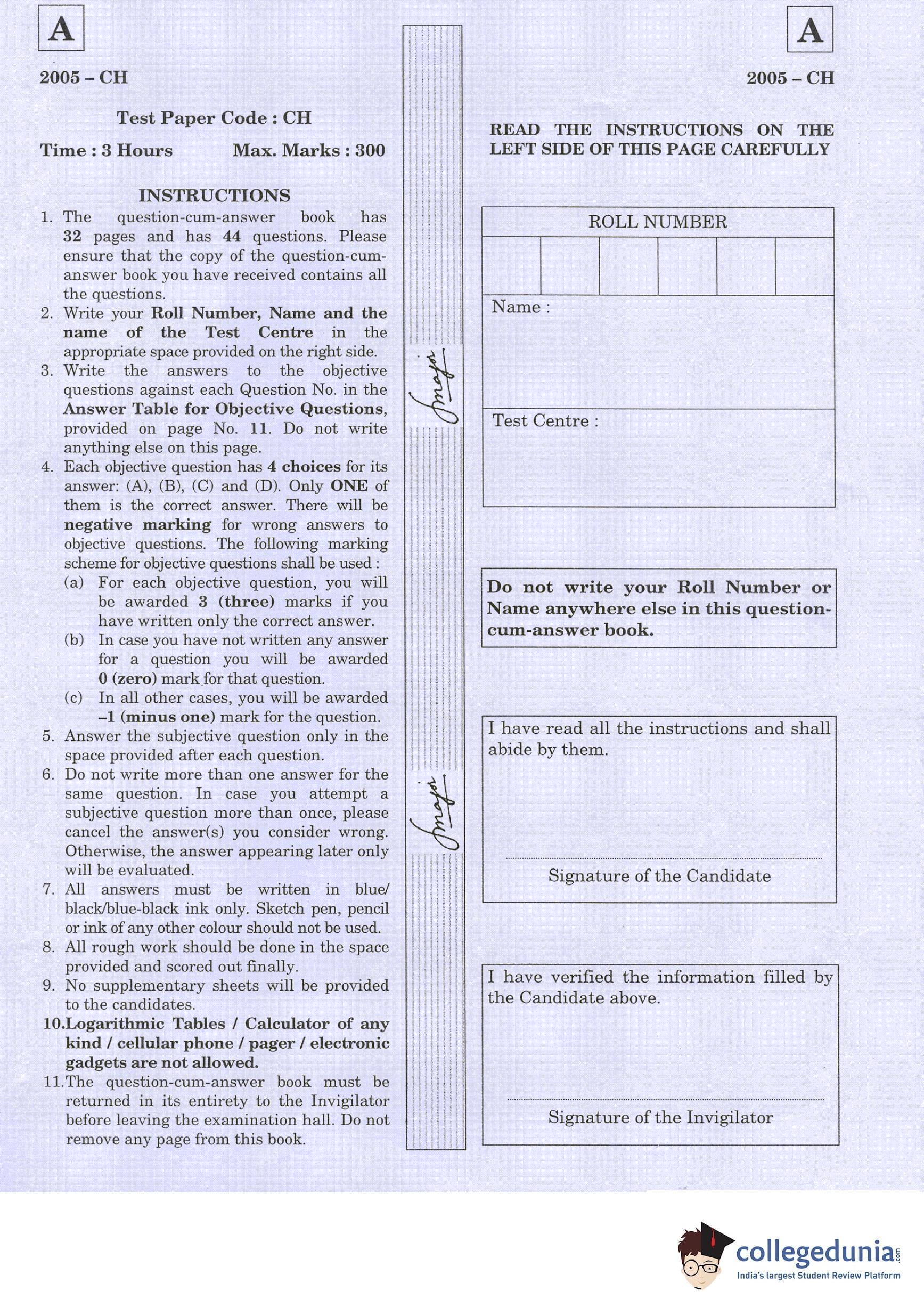 | IIT JAM 2005 Chemistry Question Paper 2005 PDF | IIT JAM 2005 Chemistry Answer Key 2005 PDF |
