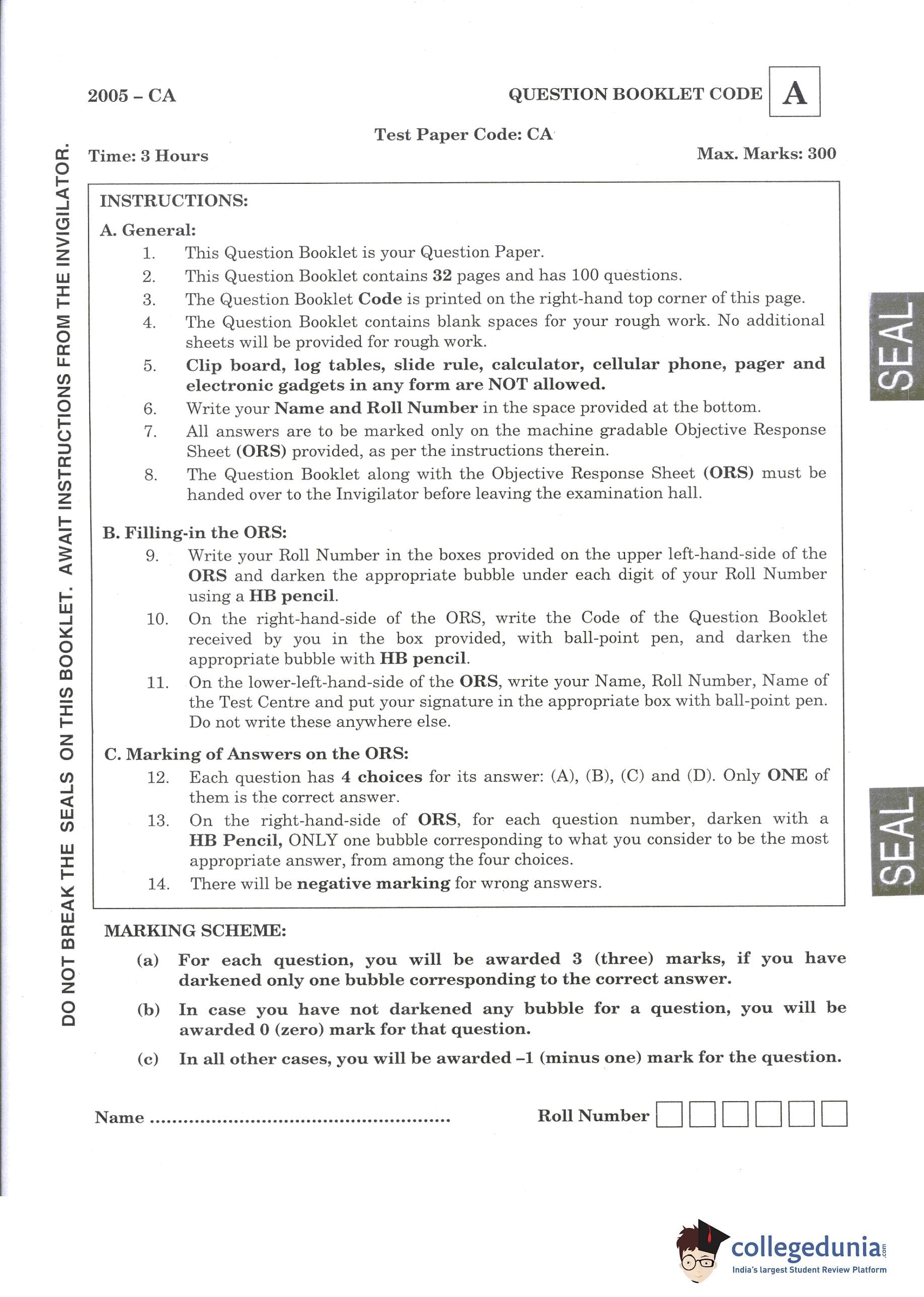 IIT JAM 2005 Computer Applications Question Paper with Answer Key pdf is available for download. The exam was conducted by Indian Institute of Technology Bombay on May 7, 2005. The question paper comprised a total of 100 questions.