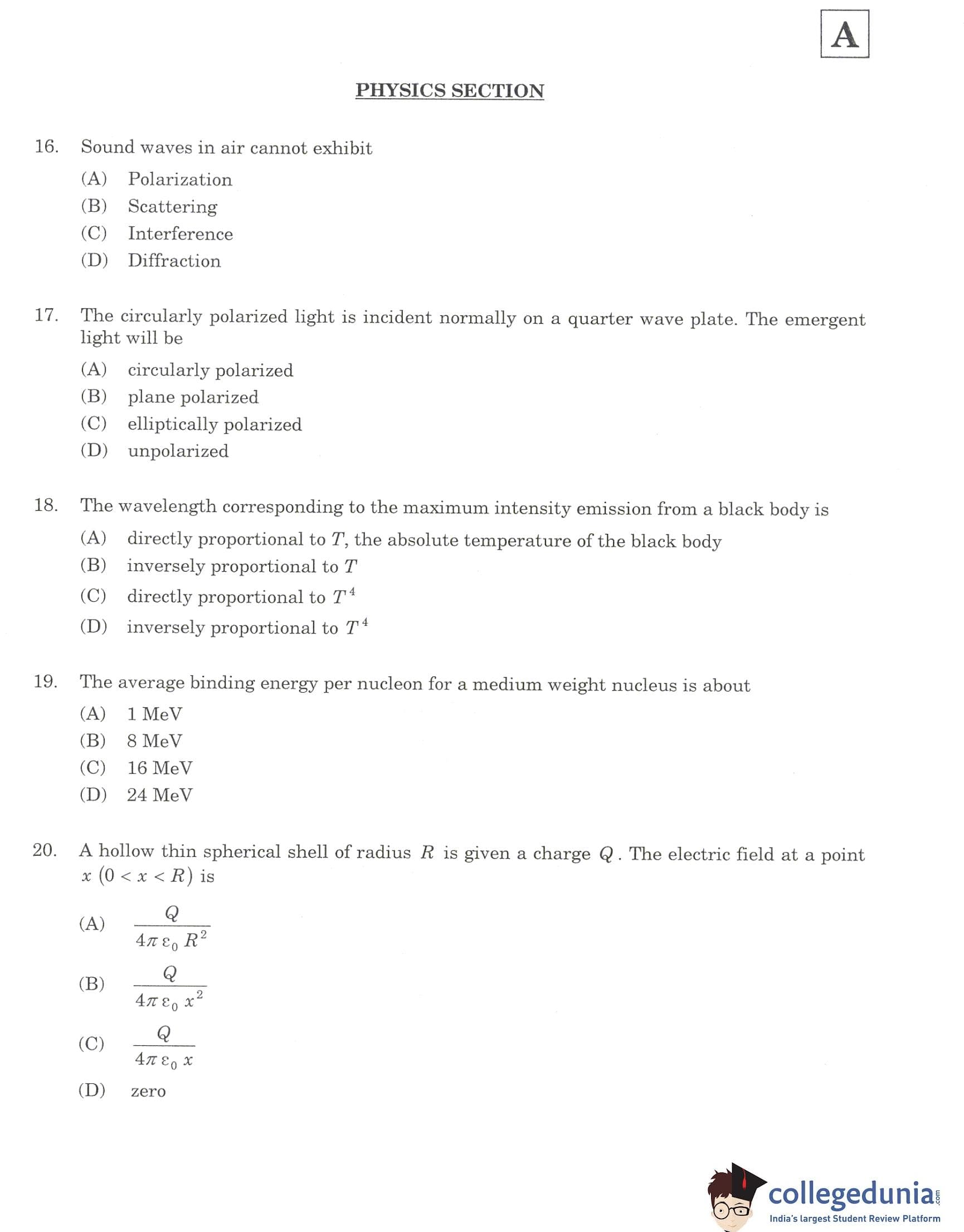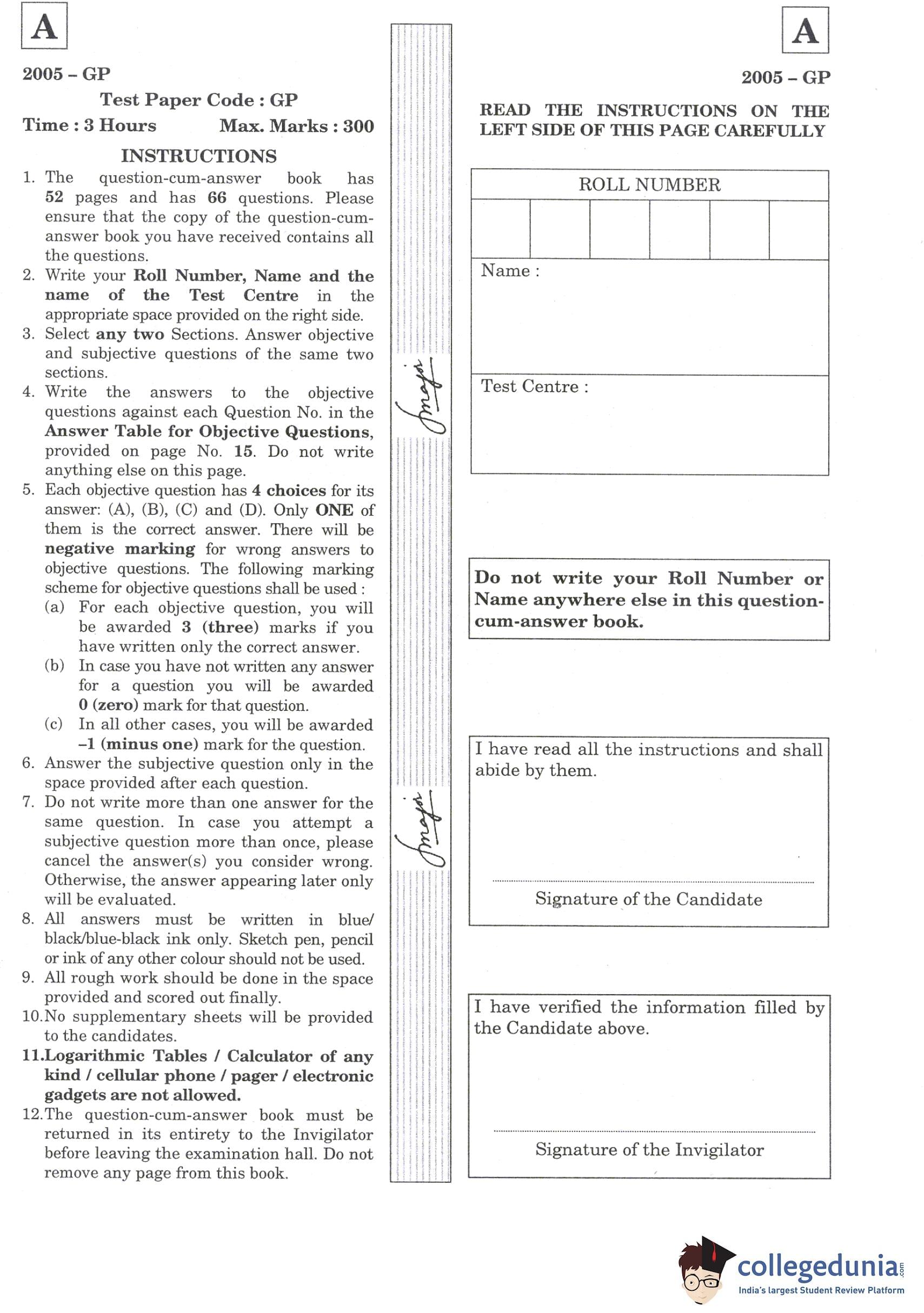 IIT JAM 2005 Geophysics Question Paper with Answer Key pdf is available for download. The exam was conducted by Indian Institute of Technology Bombay on May 7, 2005. The question paper comprised a total of 66 questions.