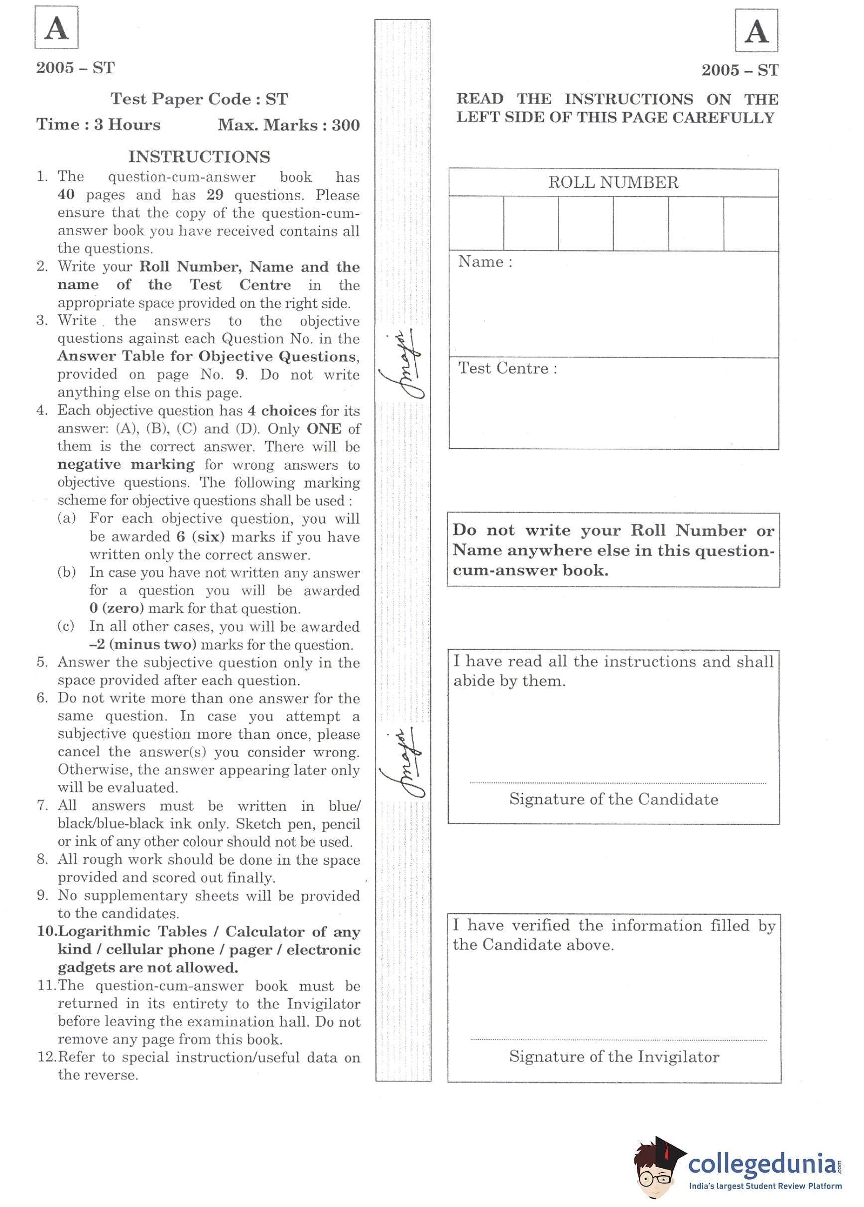 | IIT JAM 2005 Mathematical Statistics Question Paper 2005 PDF | IIT JAM 2005 Mathematical Statistics Answer Key 2005 PDF |