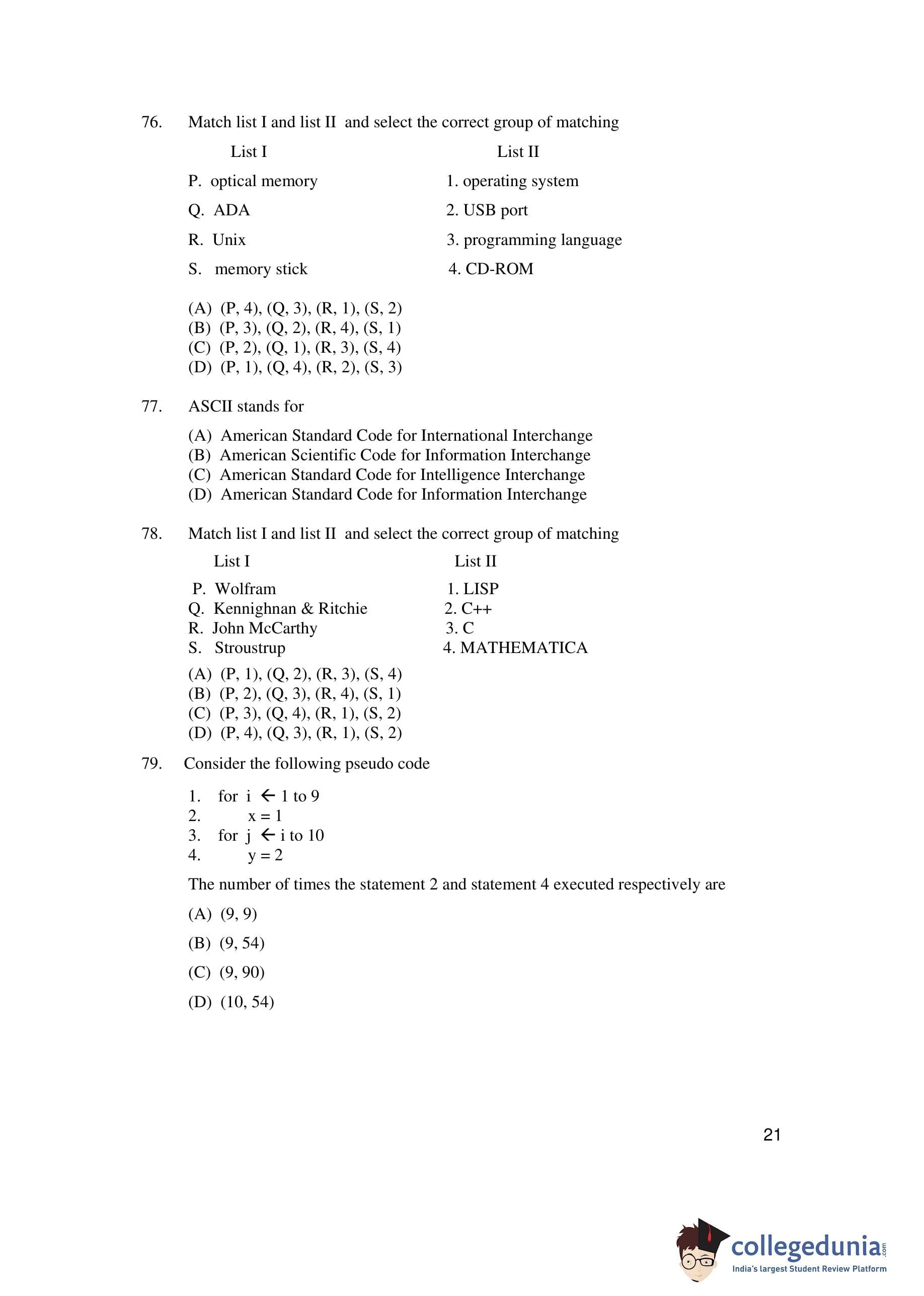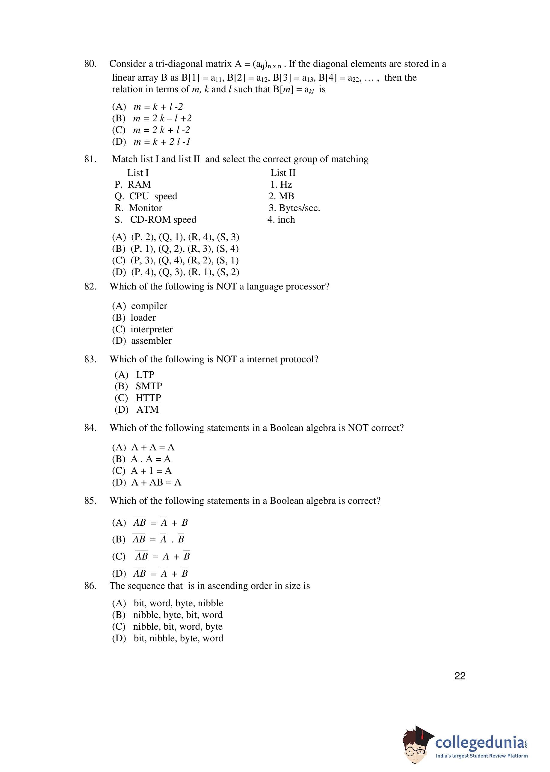 IIT JAM 2006 Computer Applications Question Paper with Answer Key pdf is available for download. The exam was conducted by Indian Institute of Technology Delhi on March 26, 2006. The question paper comprised a total of 44 questions.