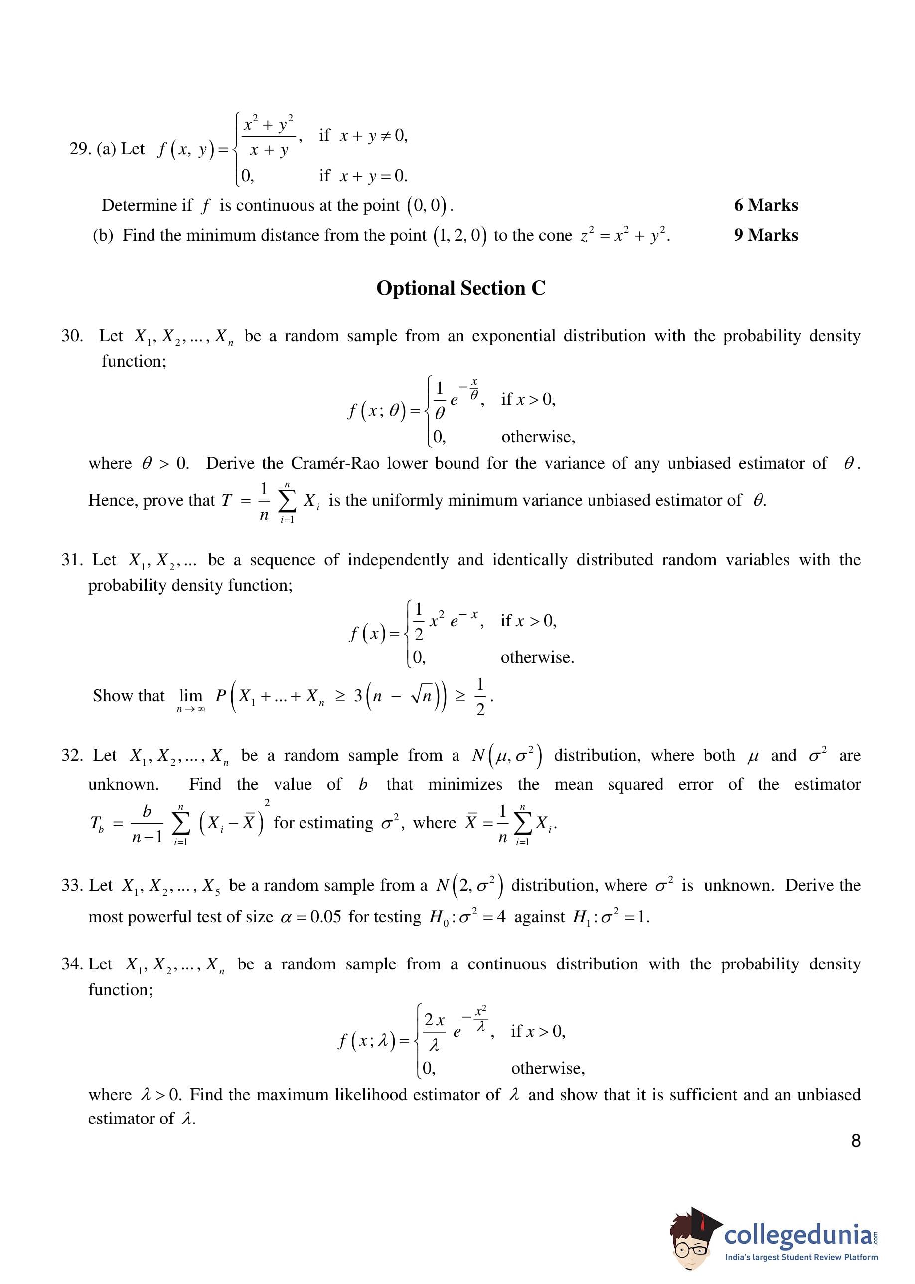 IIT JAM 2006 Mathematical Statistics Question Paper with Answer Key PDF
