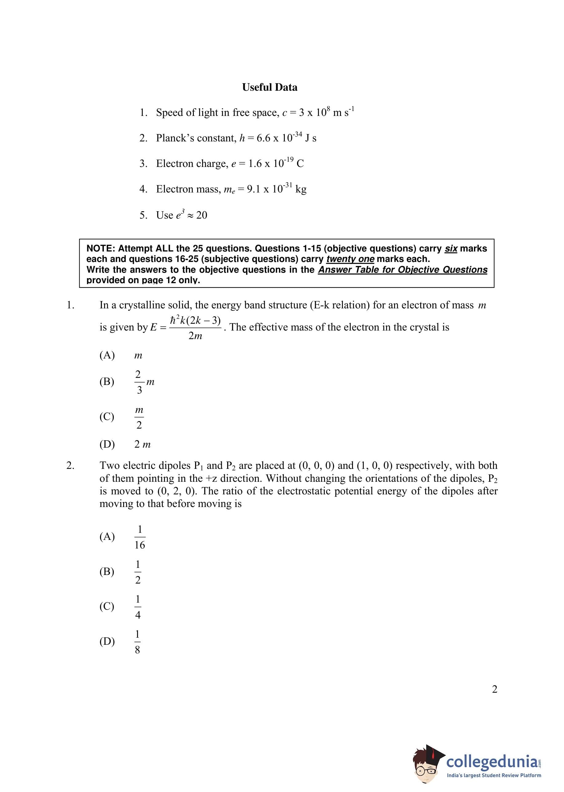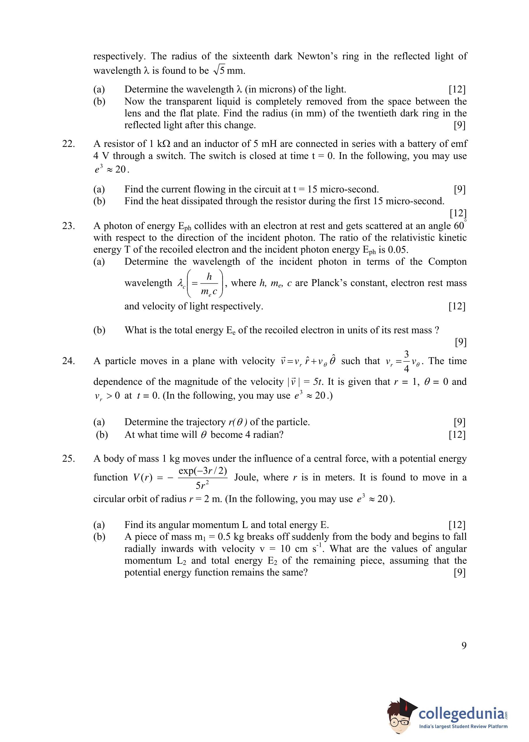 IIT JAM 2006 Physics Question Paper with Answer Key pdf is available for download. The exam was conducted by Indian Institute of Technology Delhi on March 26, 2006. The question paper comprised a total of 25 questions.
