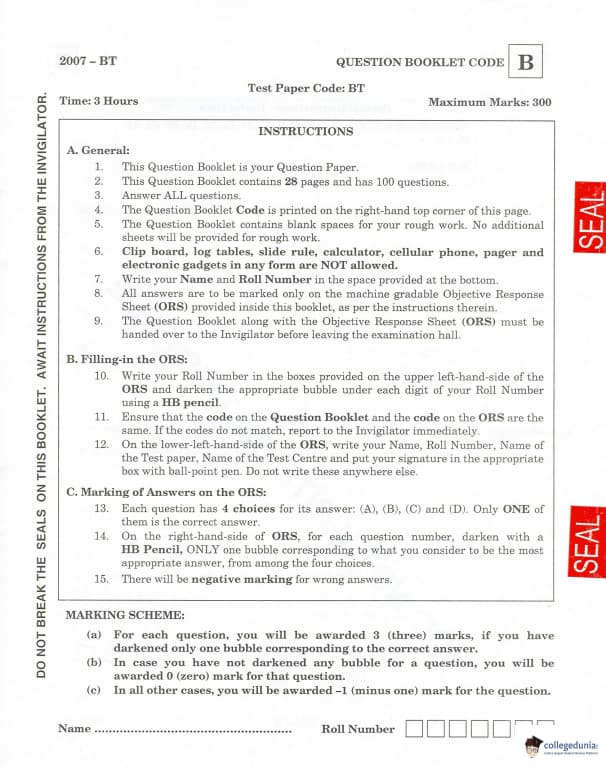 | IIT JAM 2007 Biotechnology Question Paper 2007 PDF | IIT JAM 2007 Biotechnology Answer Key 2007 PDF |