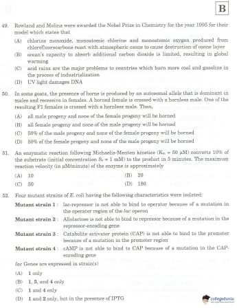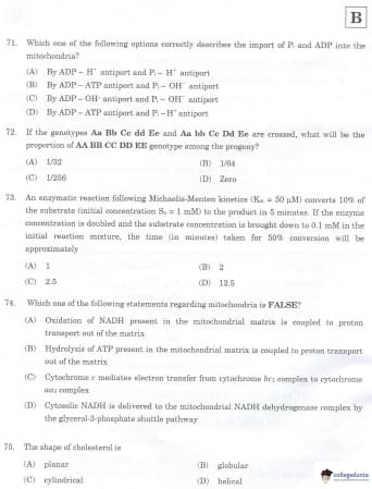 IIT JAM 2007 Biotechnology Question Paper with Answer Key pdf is available for download. The exam was conducted by Indian Institute of Technology, Guwahati . The question paper comprised a total of 100 questions.