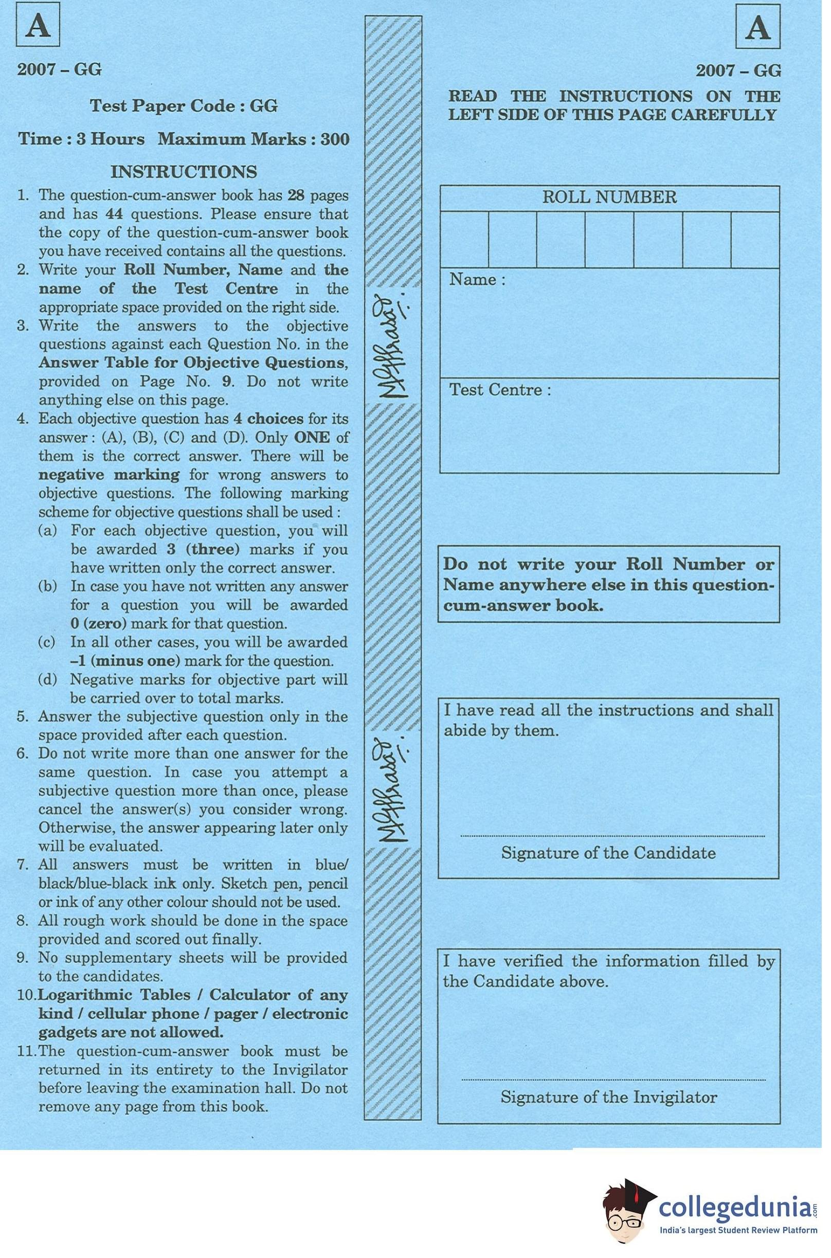| IIT JAM 2007 Geology Question Paper 2007 PDF | IIT JAM 2007 Geology Answer Key 2007 PDF |