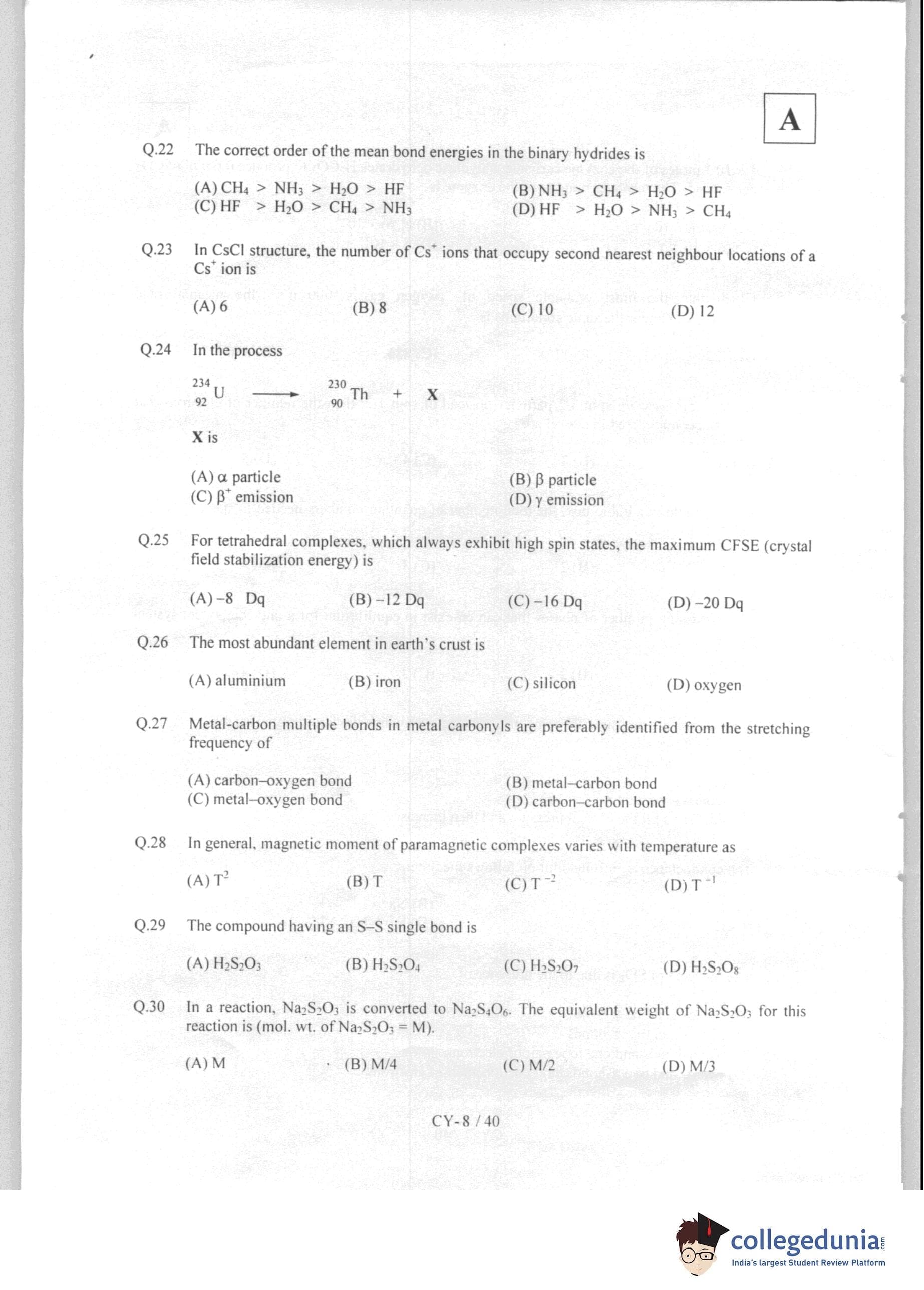 IIT JAM 2008 Chemistry Question Paper with Answer Key PDF