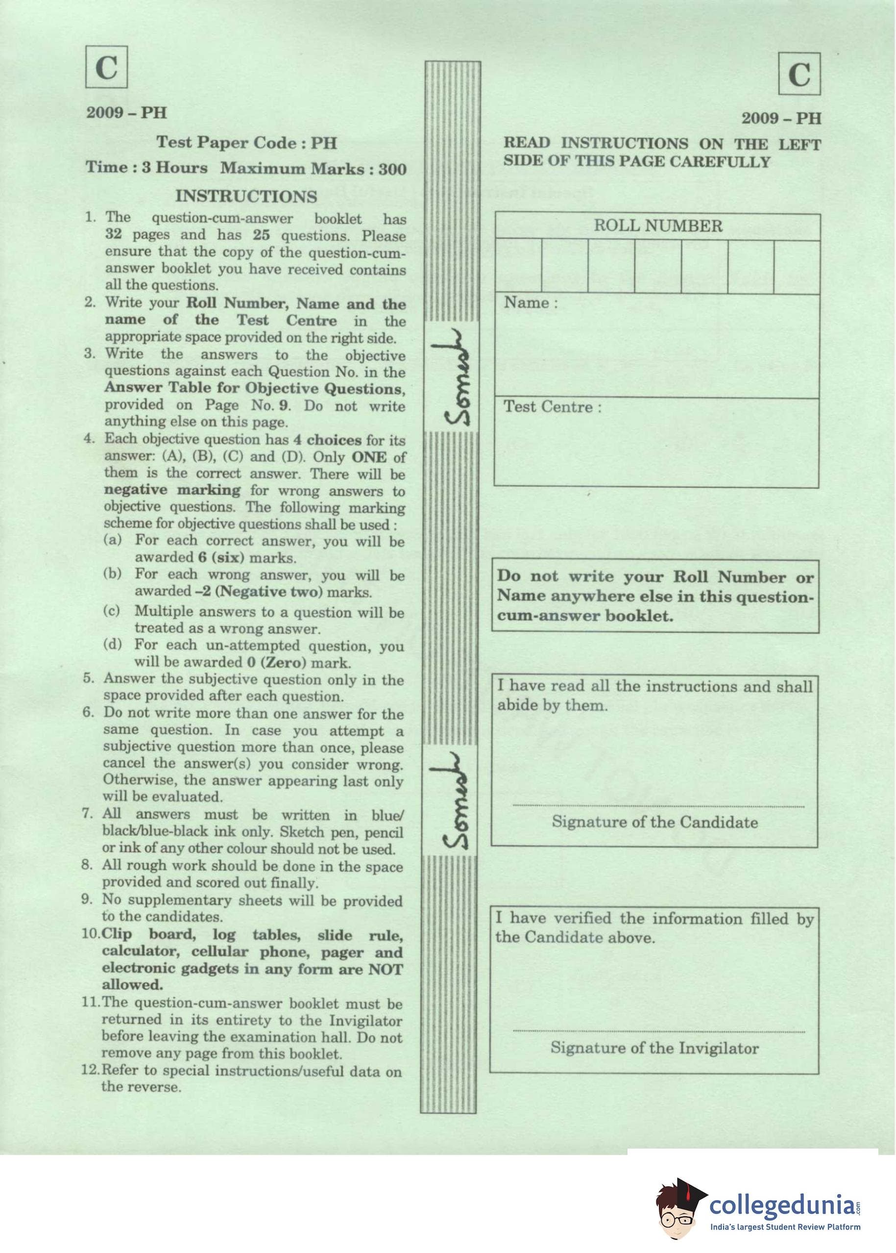 | IIT JAM 2009 Physics Question Paper 2009 PDF | IIT JAM 2009 Physics Answer Key 2009 PDF |