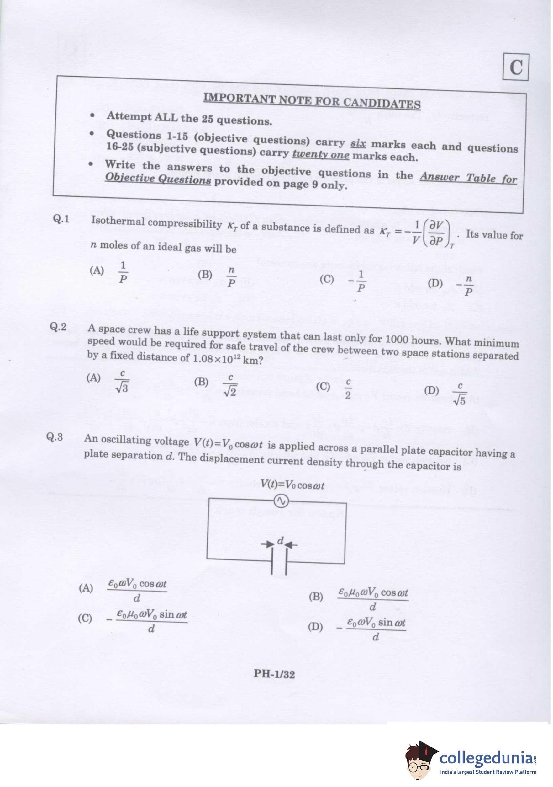 IIT JAM 2009 Physics Question Paper with Answer Key PDF