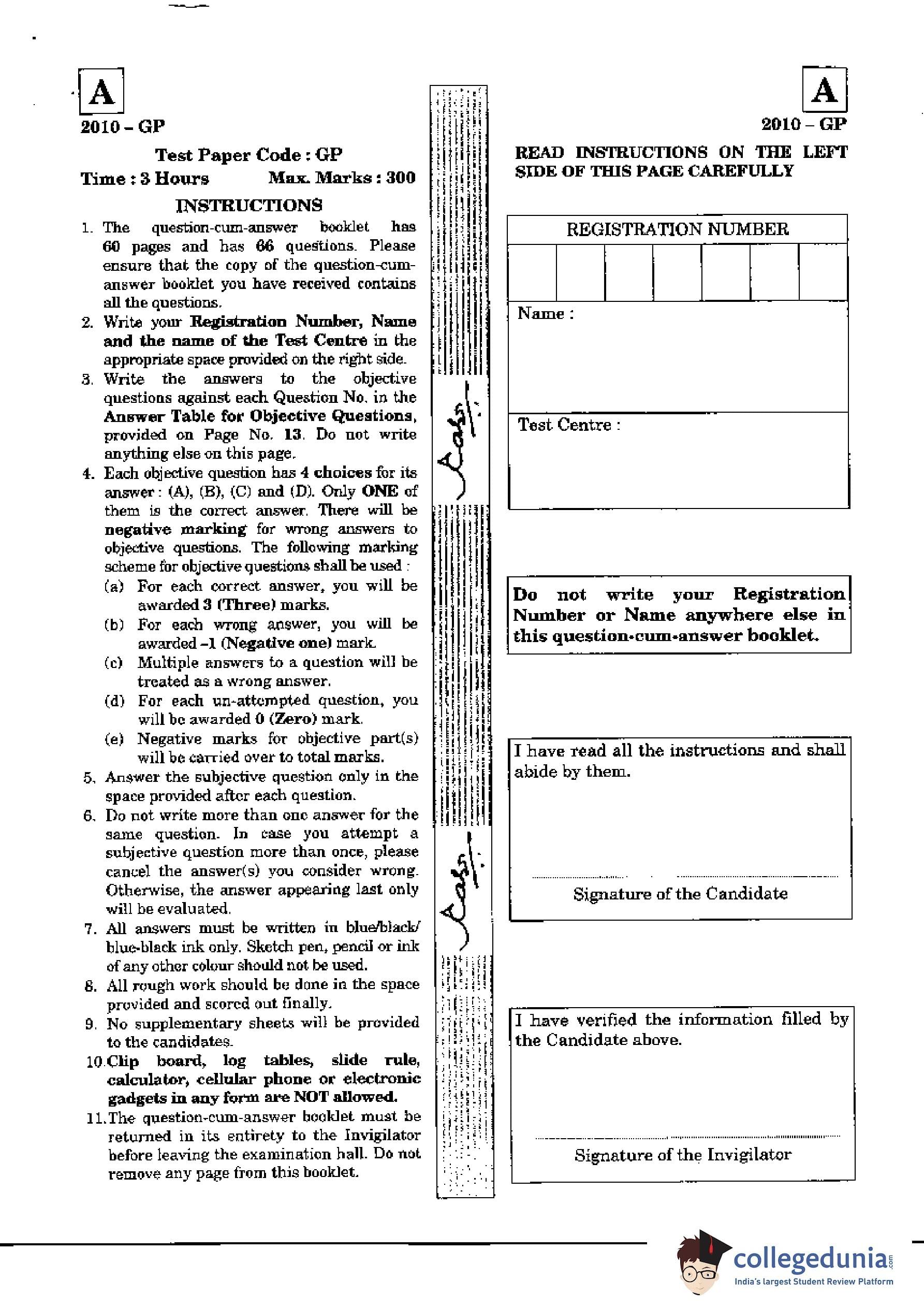| IIT JAM 2010 Geophysics Question Paper PDF | IIT JAM 2010 Geophysics Answer Key PDF |