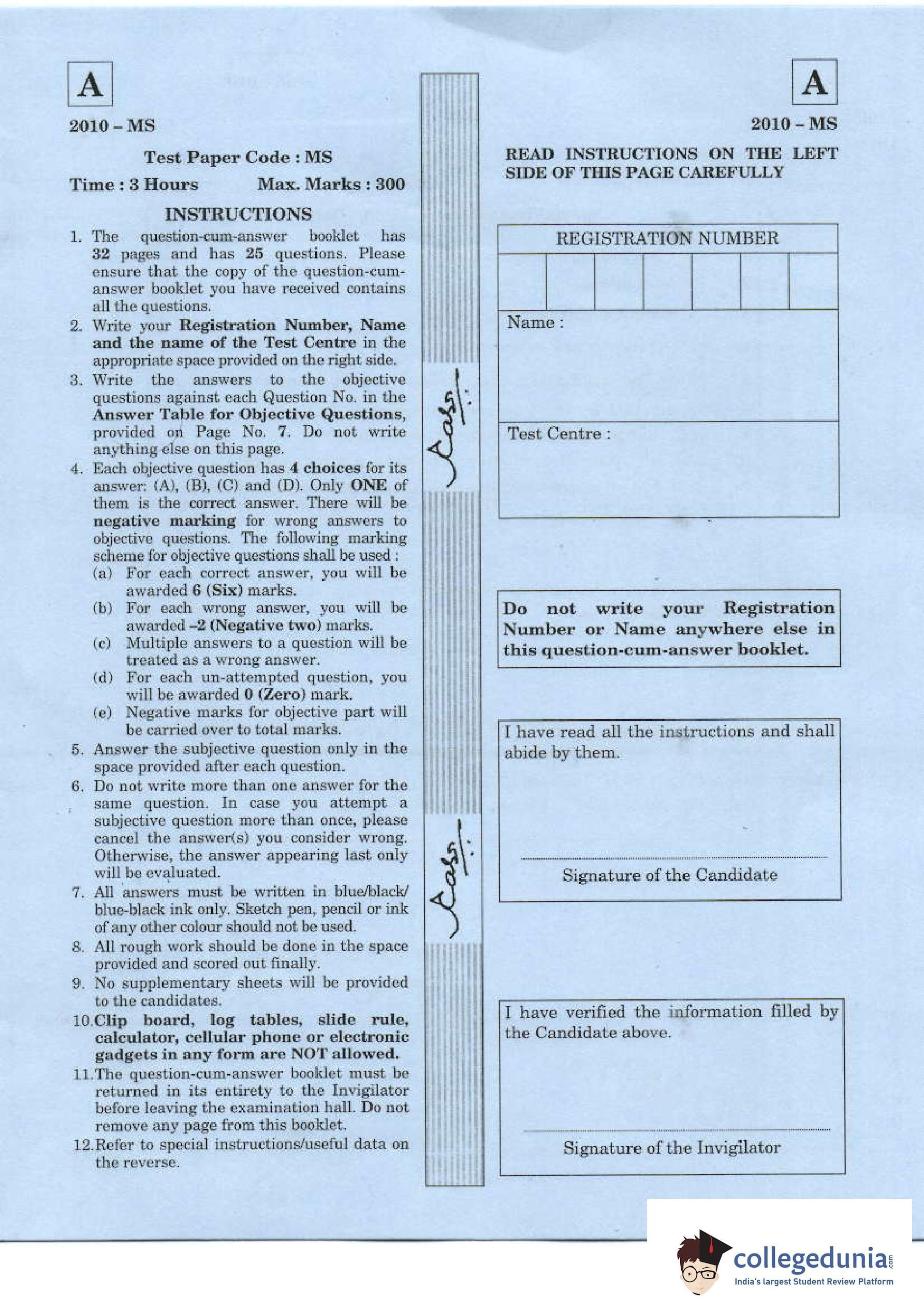 | IIT JAM 2010 Mathematical Statistics Question Paper PDF | IIT JAM 2010 Mathematical Statistics Answer Key PDF |