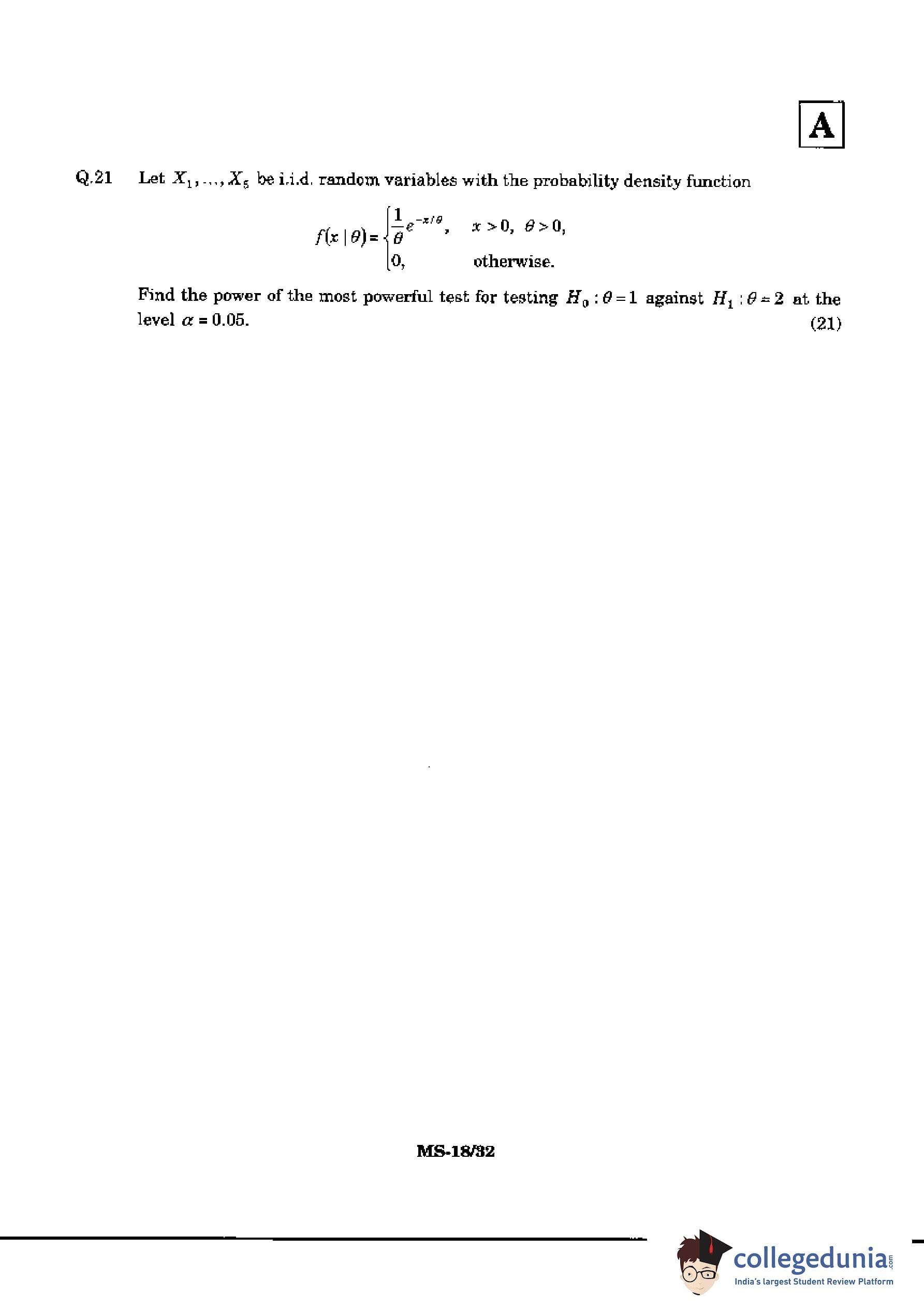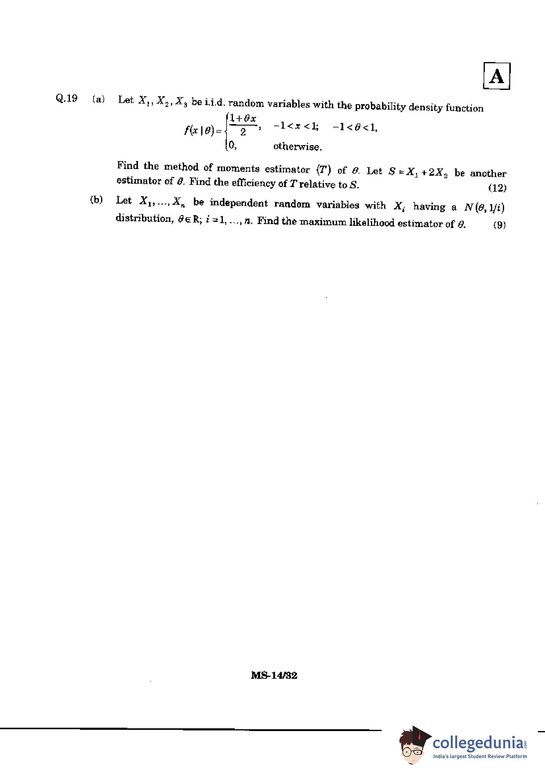 IIT JAM 2010 Mathematical Statistics Question Paper with Answer Key pdf is available for download. The exam was conducted by Indian Institute of Technology Roorkee (IIT Roorkee) on May 2, 2010. The question paper comprised a total of 25 questions.