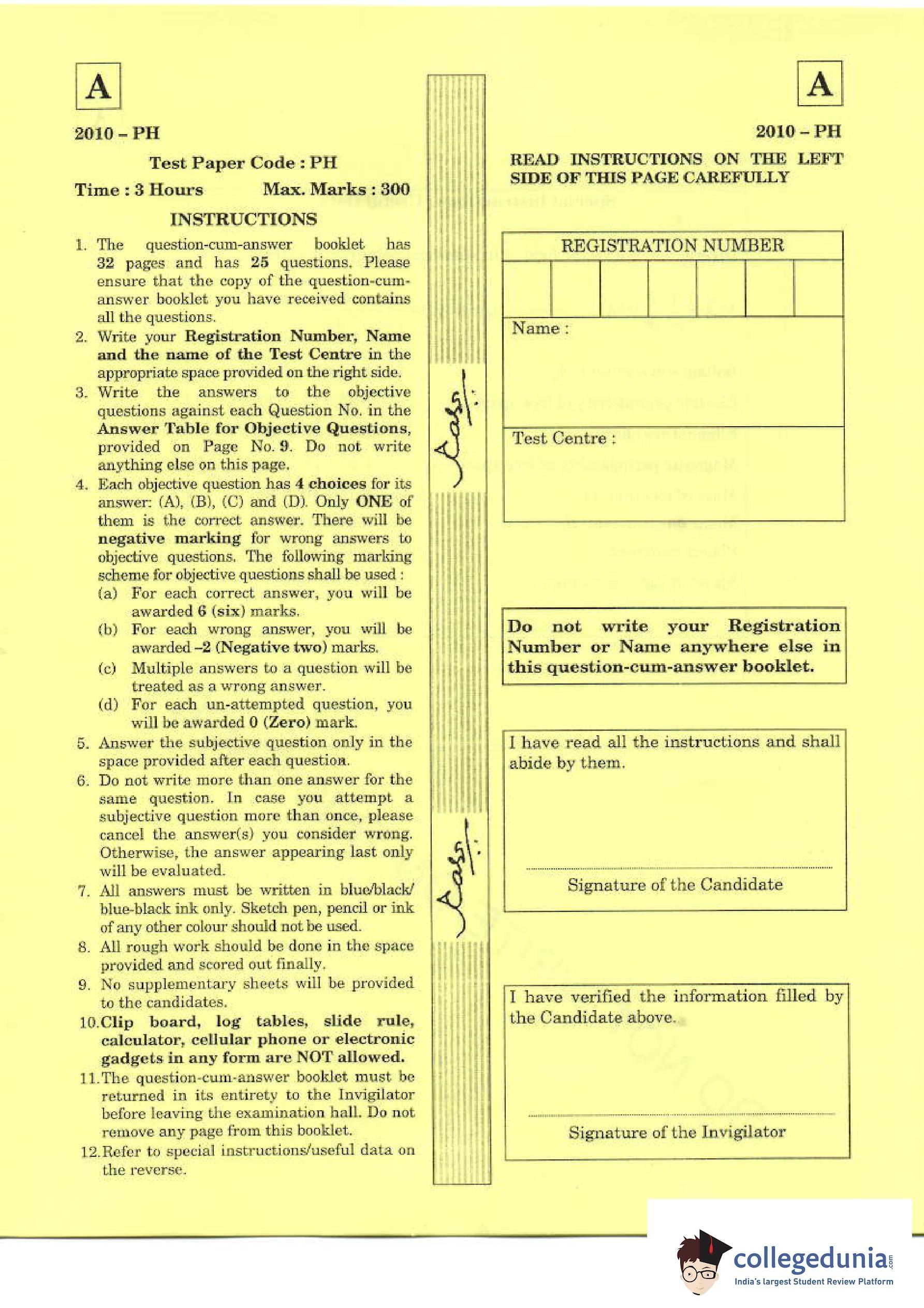 | IIT JAM 2010 Physics Question Paper PDF | IIT JAM 2010 Physics Answer Key PDF |
