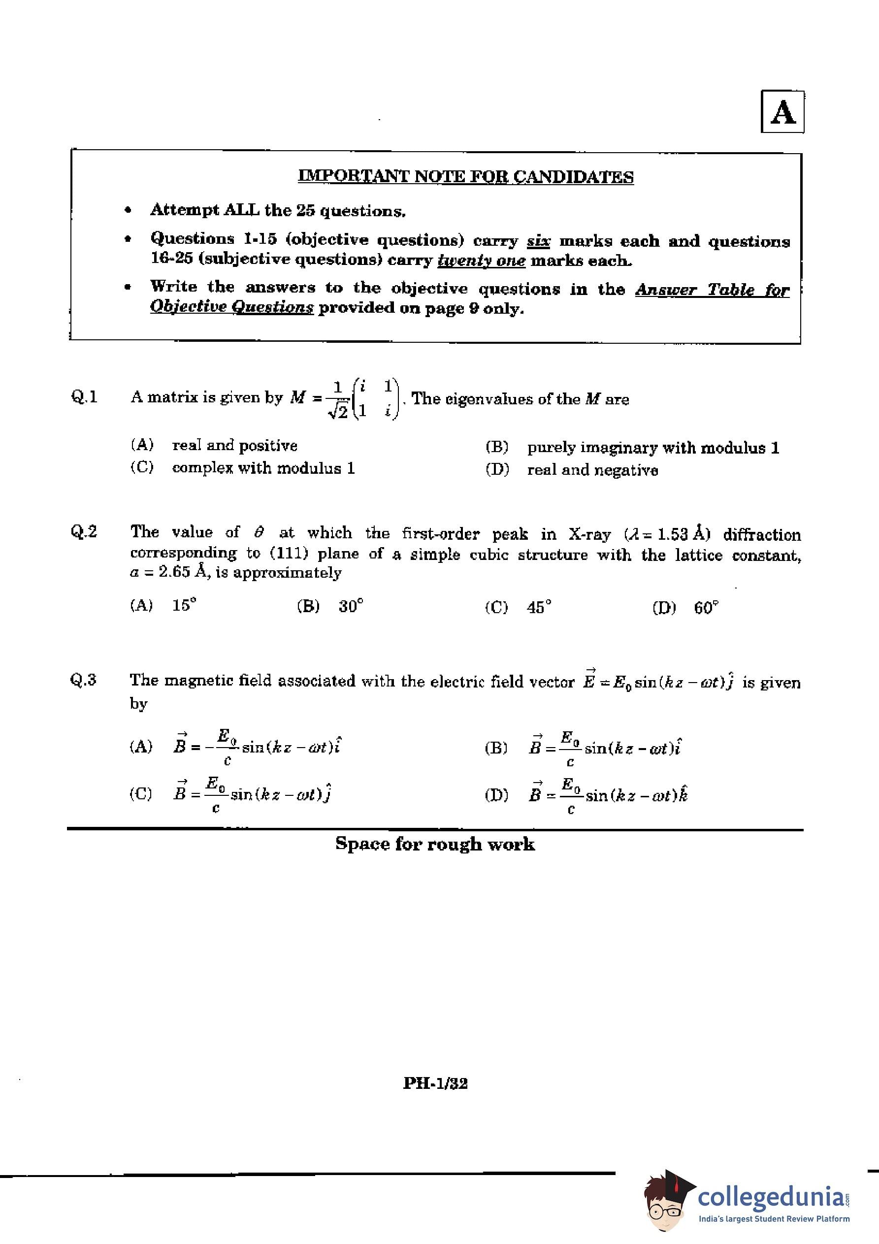 IIT JAM 2010 Physics Question Paper with Answer Key pdf is available for download. The exam was conducted by Indian Institute of Technology Roorkee (IIT Roorkee) on May 2, 2010. The question paper comprised a total of 25 questions.