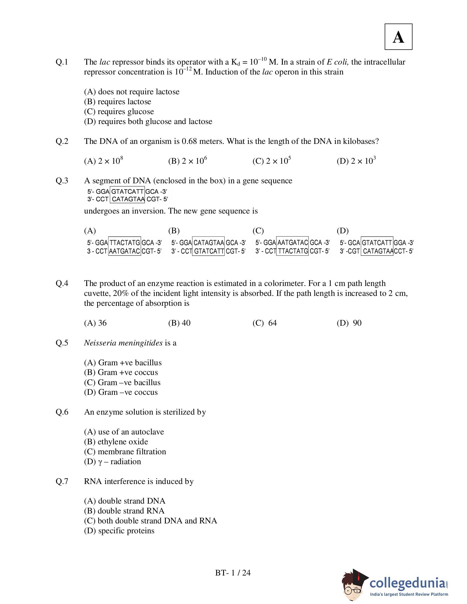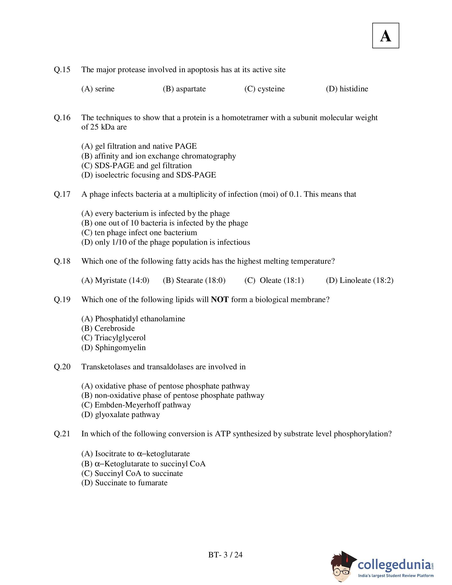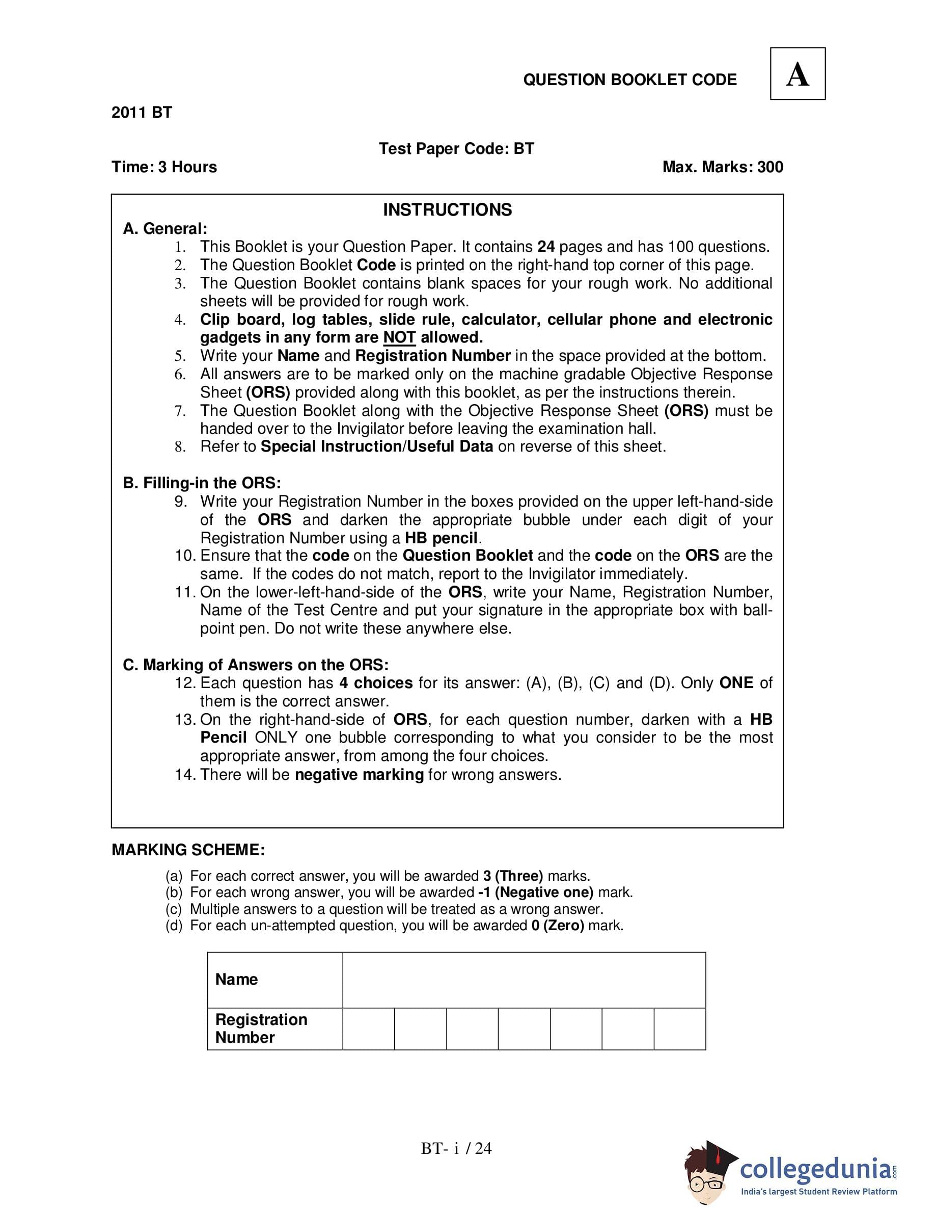 IIT JAM 2011 Biotechnology Question Paper with Answer Key pdf is available for download. The exam was conducted by Indian Institute of Technology Delhi on May 8, 2011. The question paper comprised a total of 100 questions.