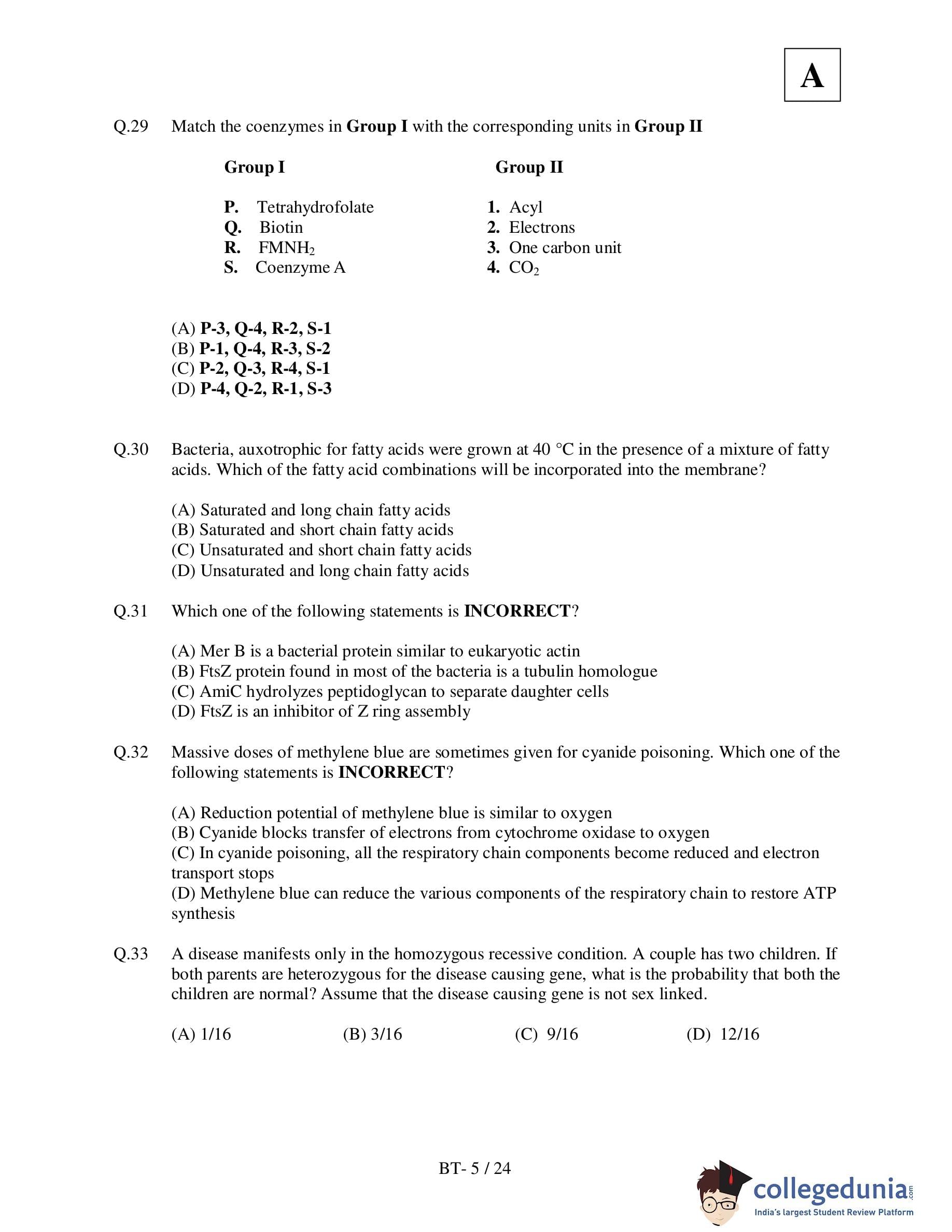 IIT JAM 2011 Biotechnology Question Paper with Answer Key PDF
