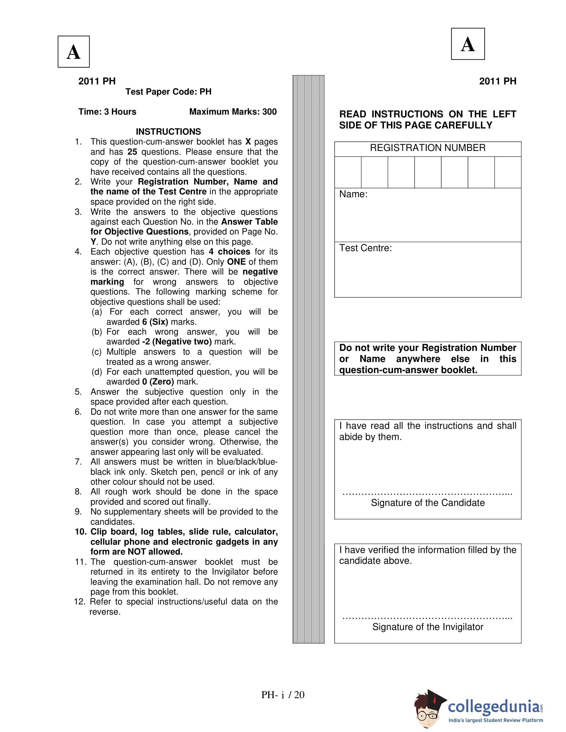 | IIT JAM 2011 Physics Question Paper PDF | IIT JAM 2011 Physics Answer Key PDF |