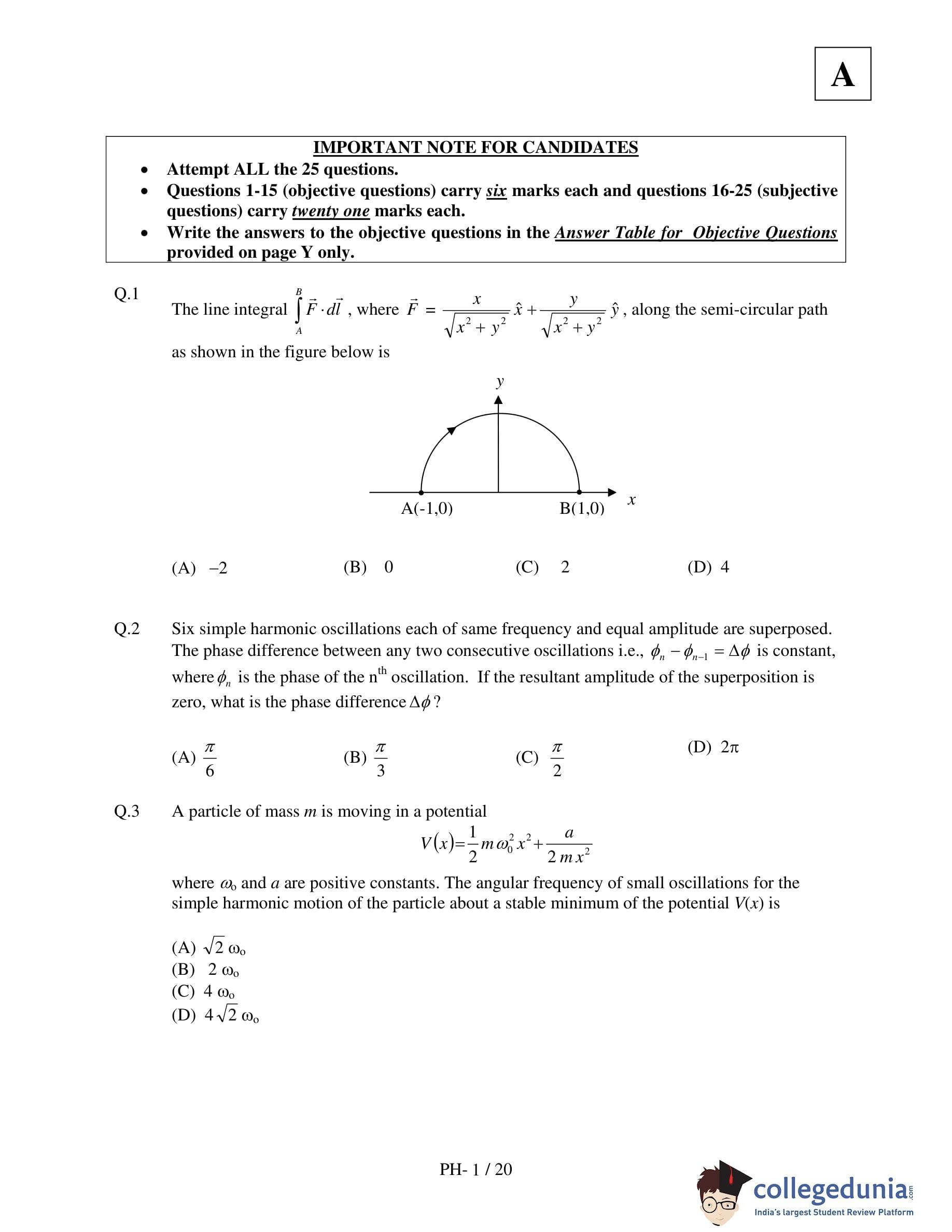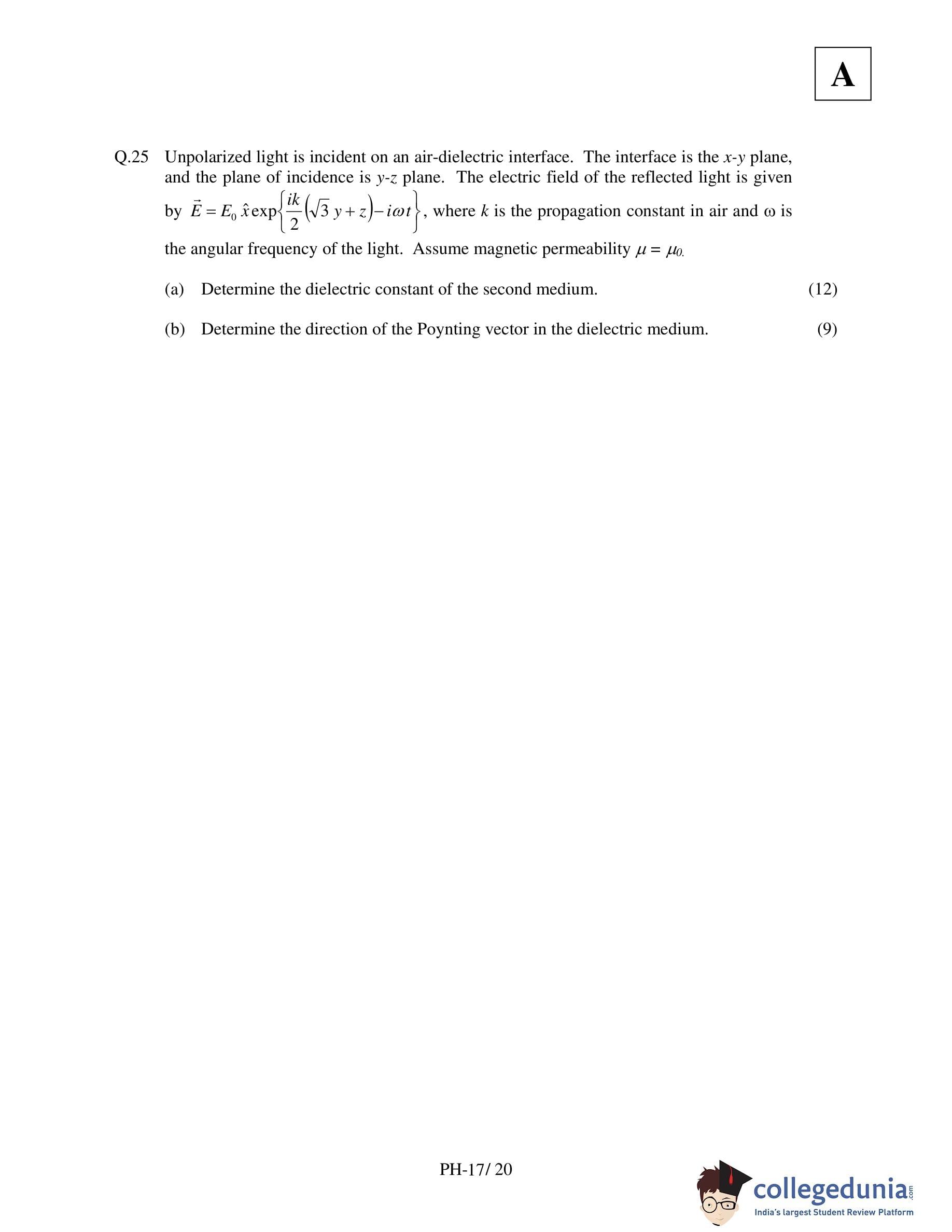 IIT JAM 2011 Physics Question Paper with Answer Key pdf is available for download. The exam was conducted by Indian Institute of Technology Delhi on May 8, 2011. The question paper comprised a total of 25 questions.