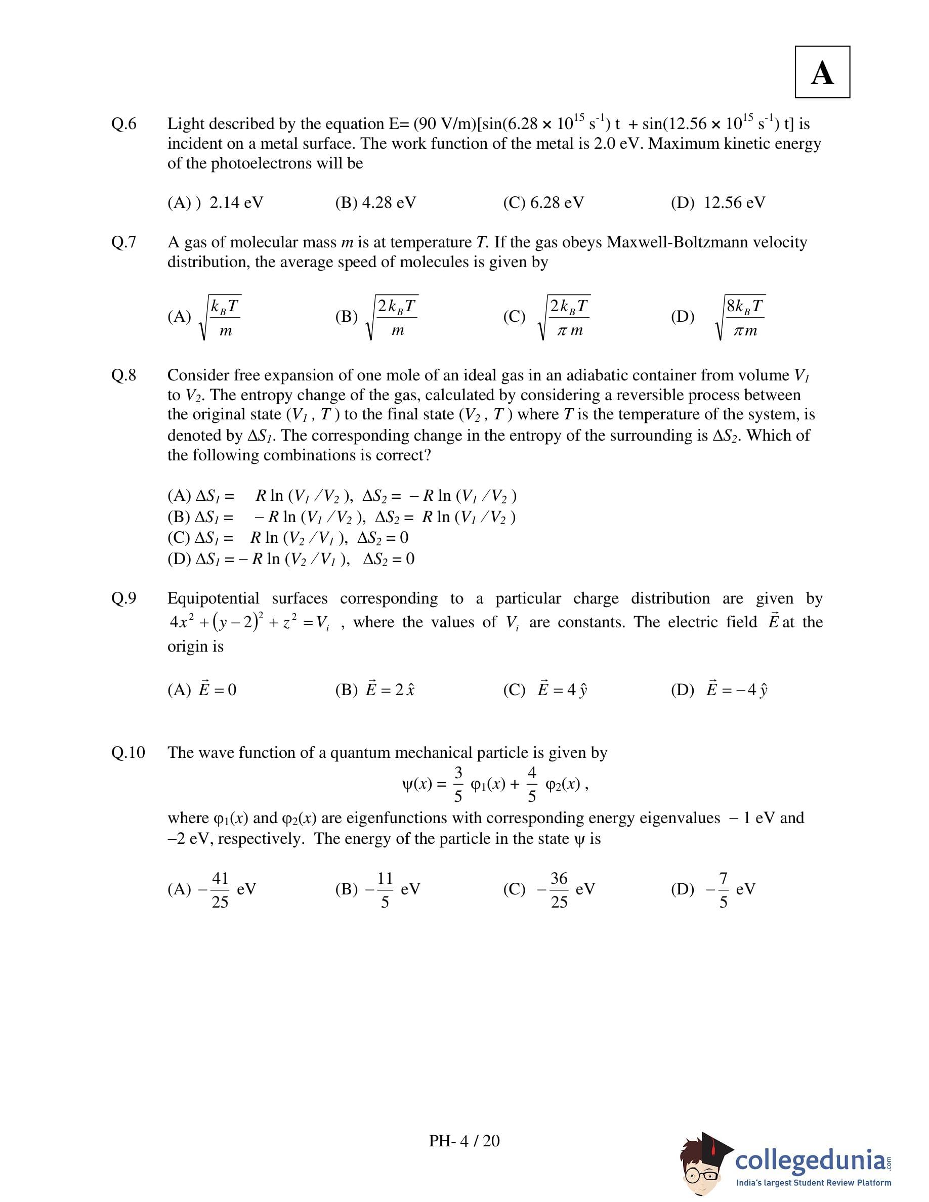 IIT JAM 2011 Physics Question Paper with Answer Key PDF