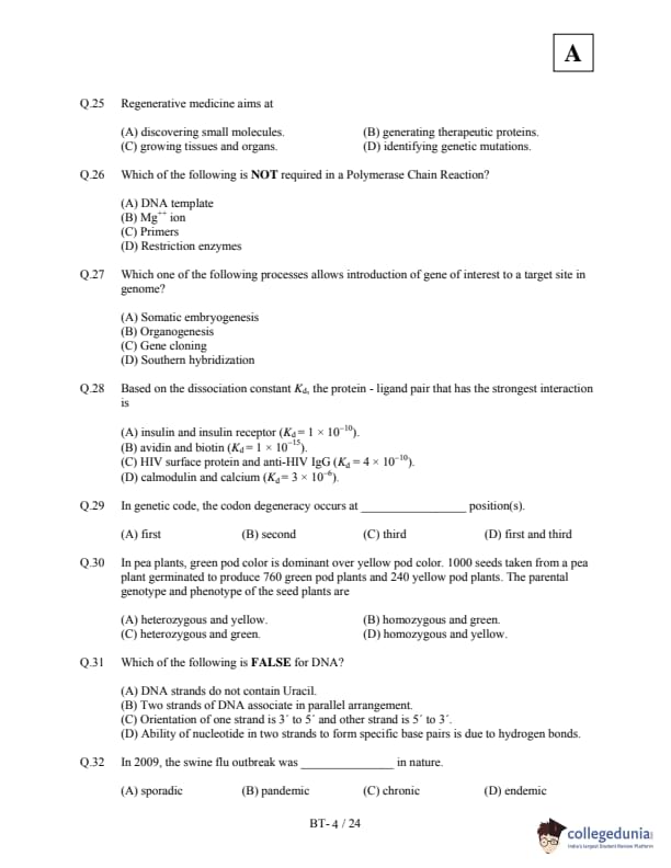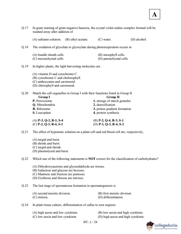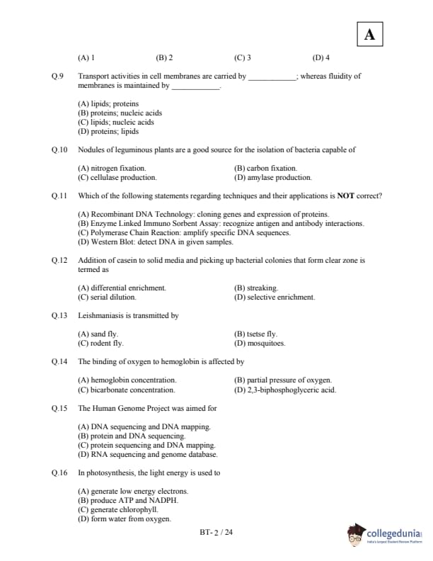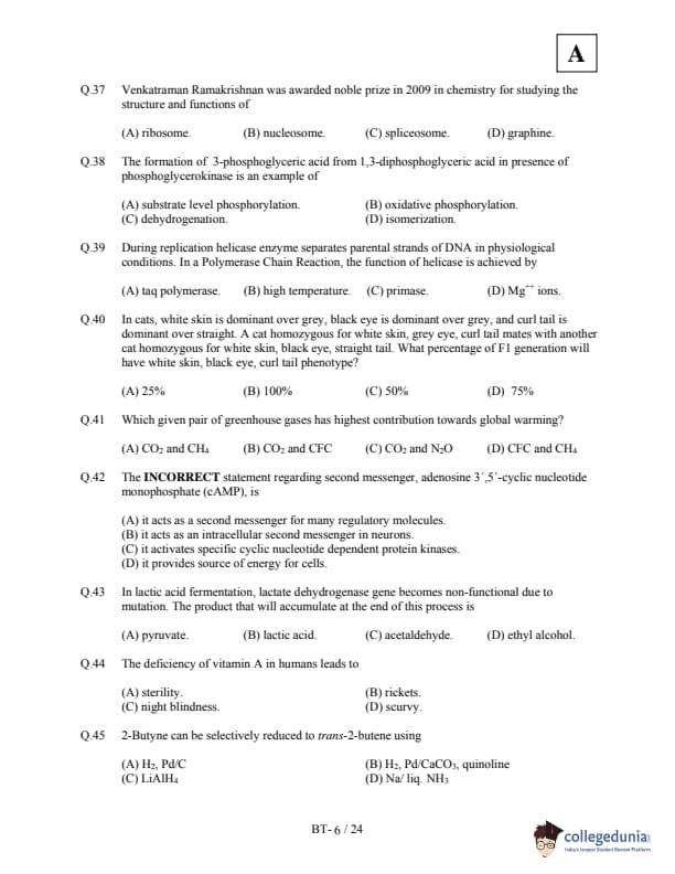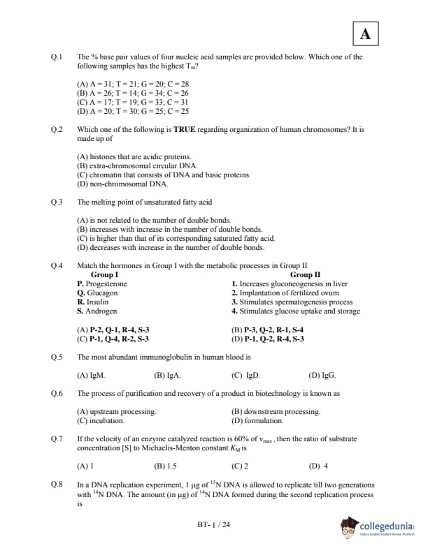 IIT JAM 2012 Biotechnology (BT) Question Paper with Answer Key PDFs Afternoon Session