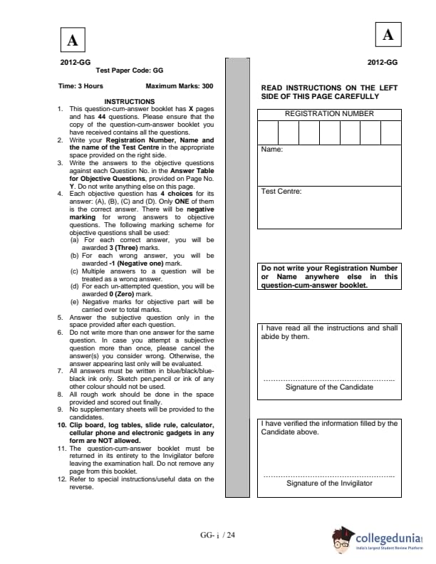 | IIT JAM 2012 Geology (GG) Question Paper PDF | IIT JAM 2012 Geology (GG) Answer Key PDF |