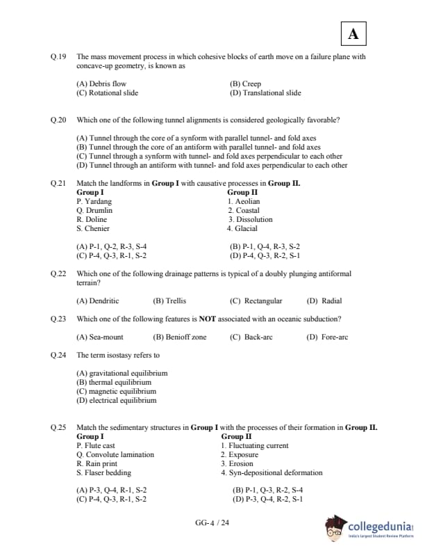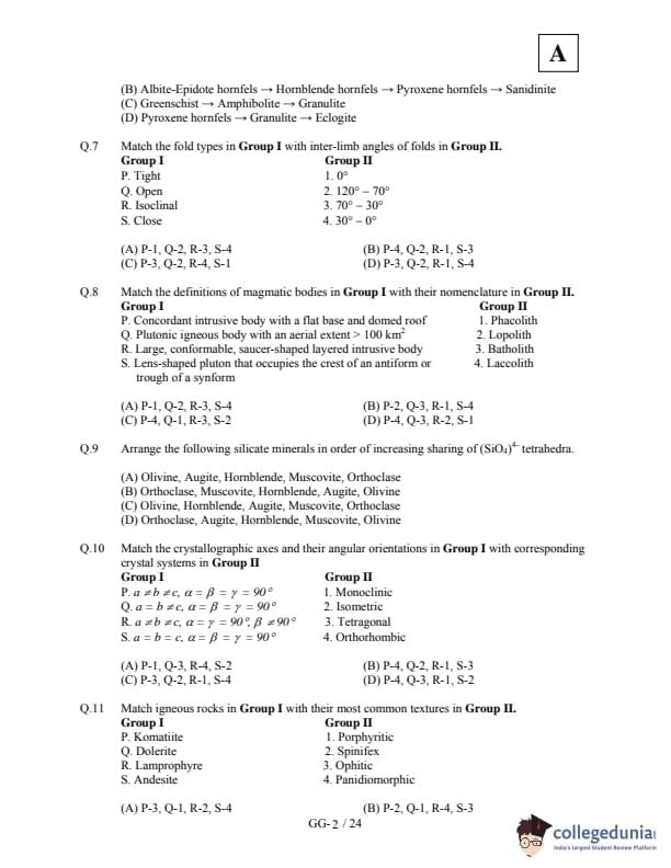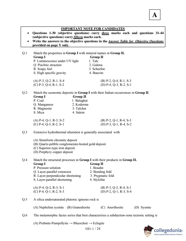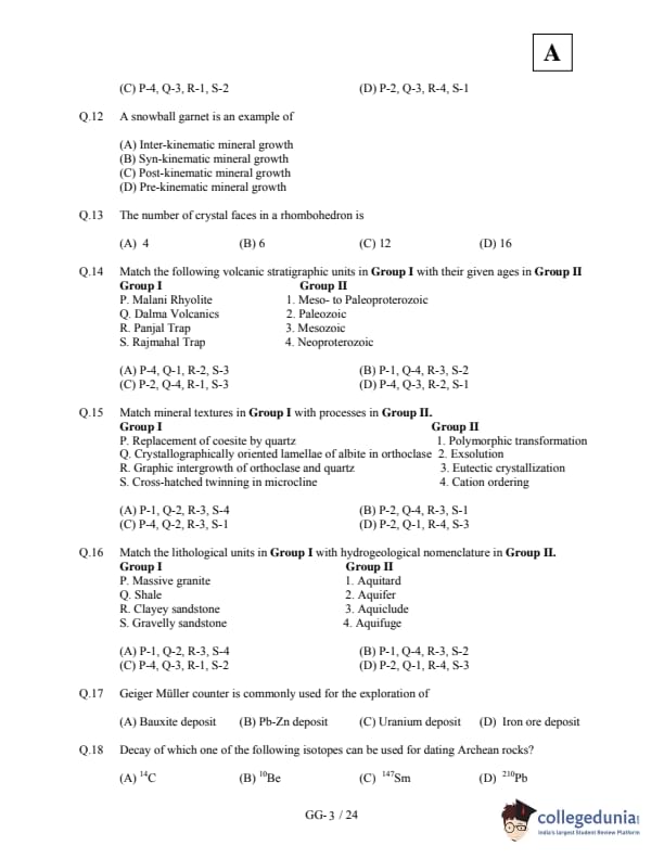 IIT JAM 2012 Geology (GG) Question Paper with Answer Key PDFs Forenoon Session