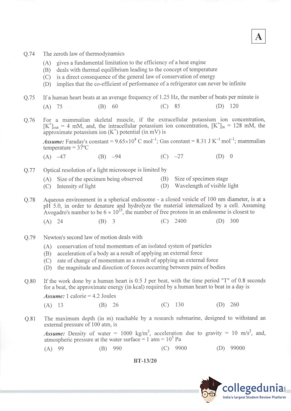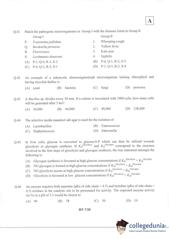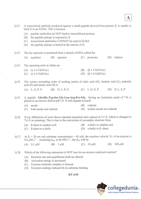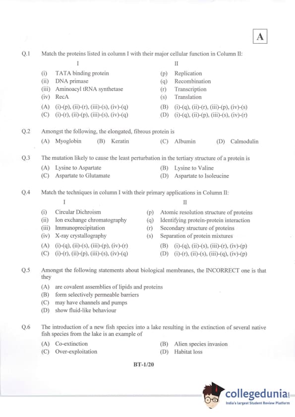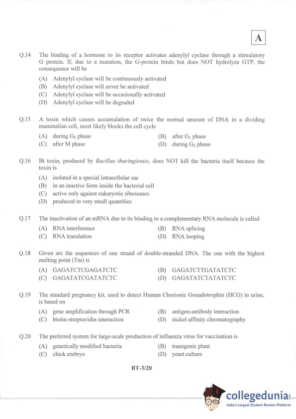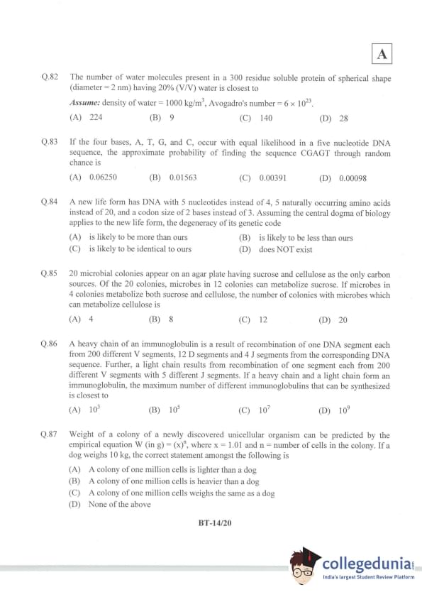 IIT JAM 2014 Biotechnology (BT) Question Paper with Answer Key PDFs Forenoon Session
