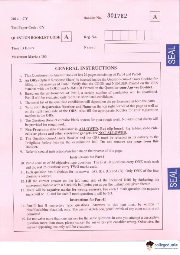 | IIT JAM 2014 Chemistry (CY) Question Paper PDF | IIT JAM 2014 Chemistry (CY) Answer Key PDF |