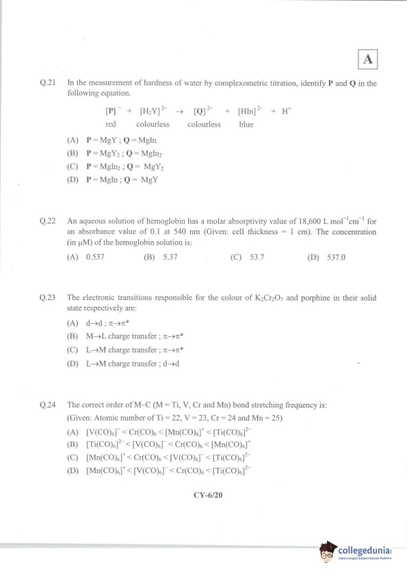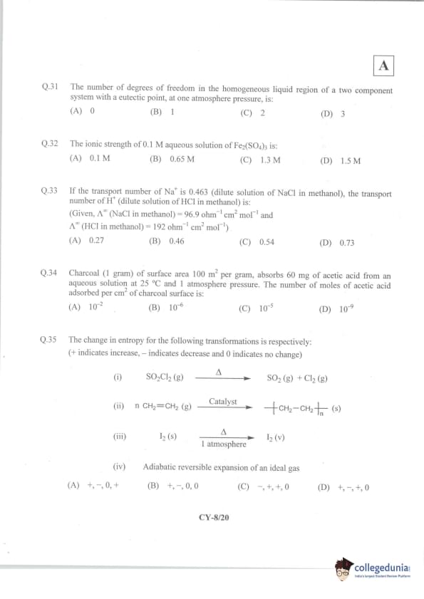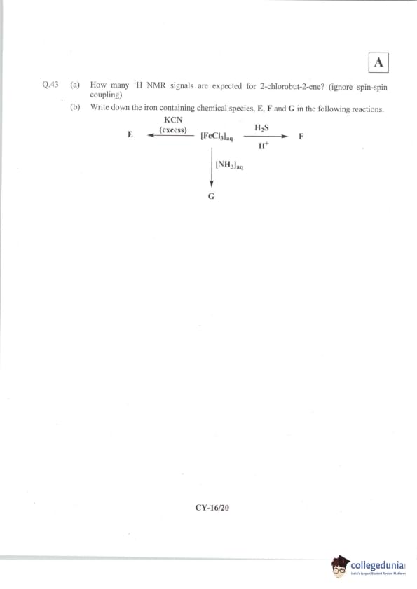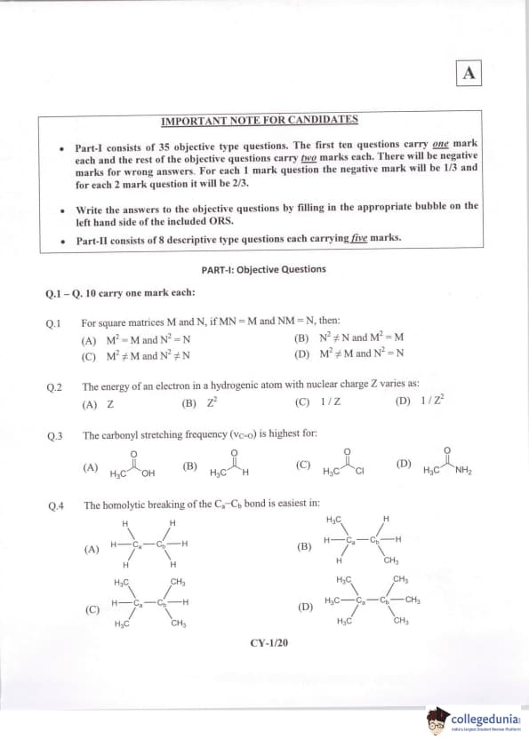 IIT JAM 2014 Chemistry (CY) Question Paper with Answer Key PDFs Forenoon Session