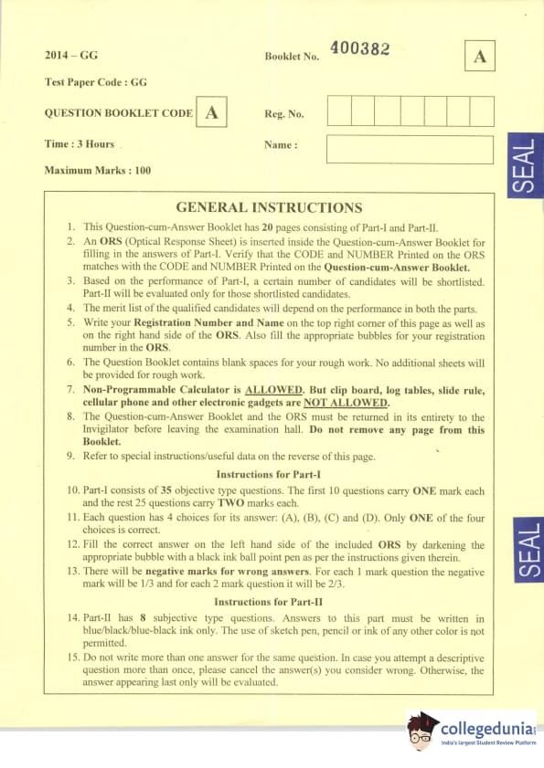 | IIT JAM 2014 Geology (GG) Question Paper PDF | IIT JAM 2014 Geology (GG) Answer Key PDF |